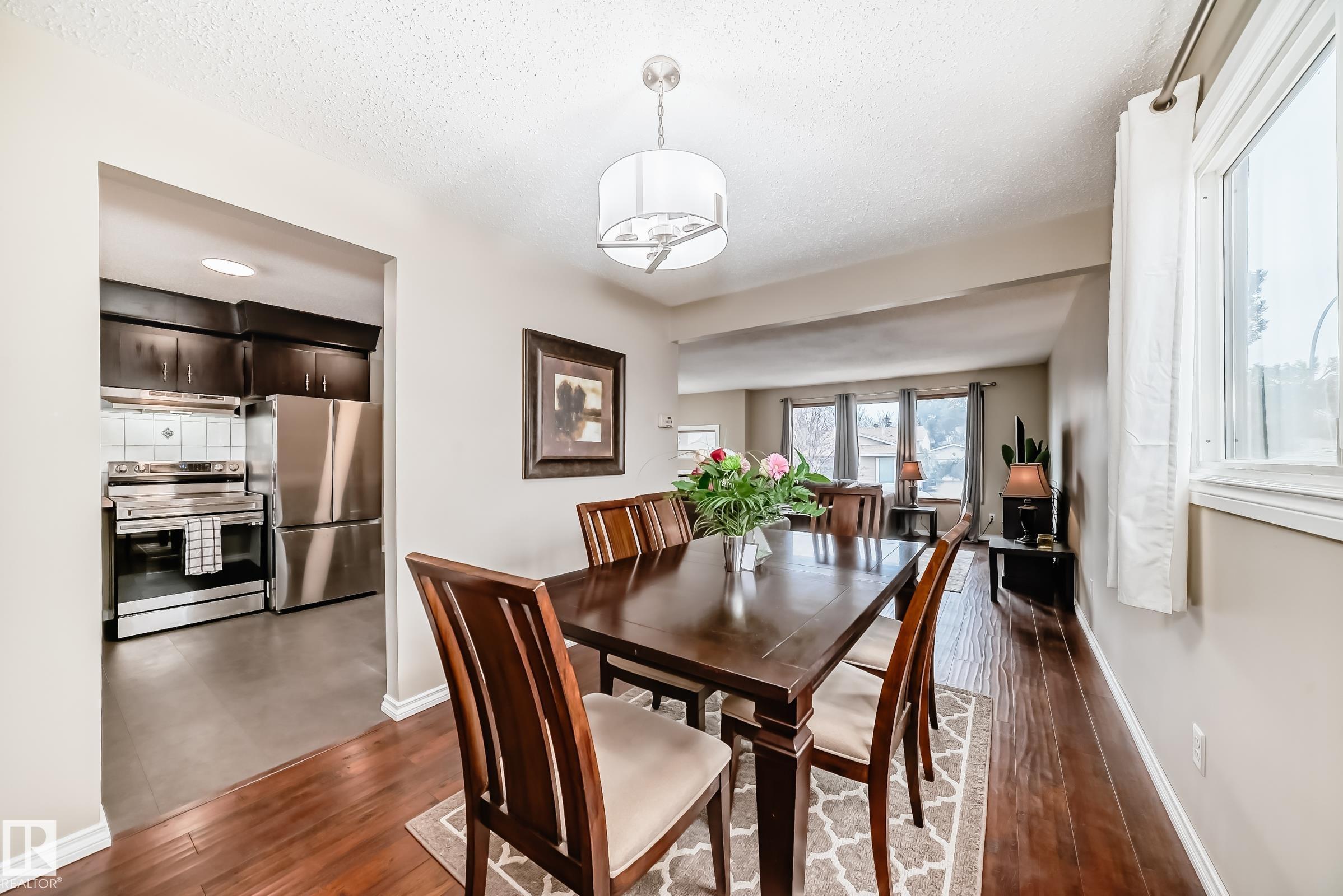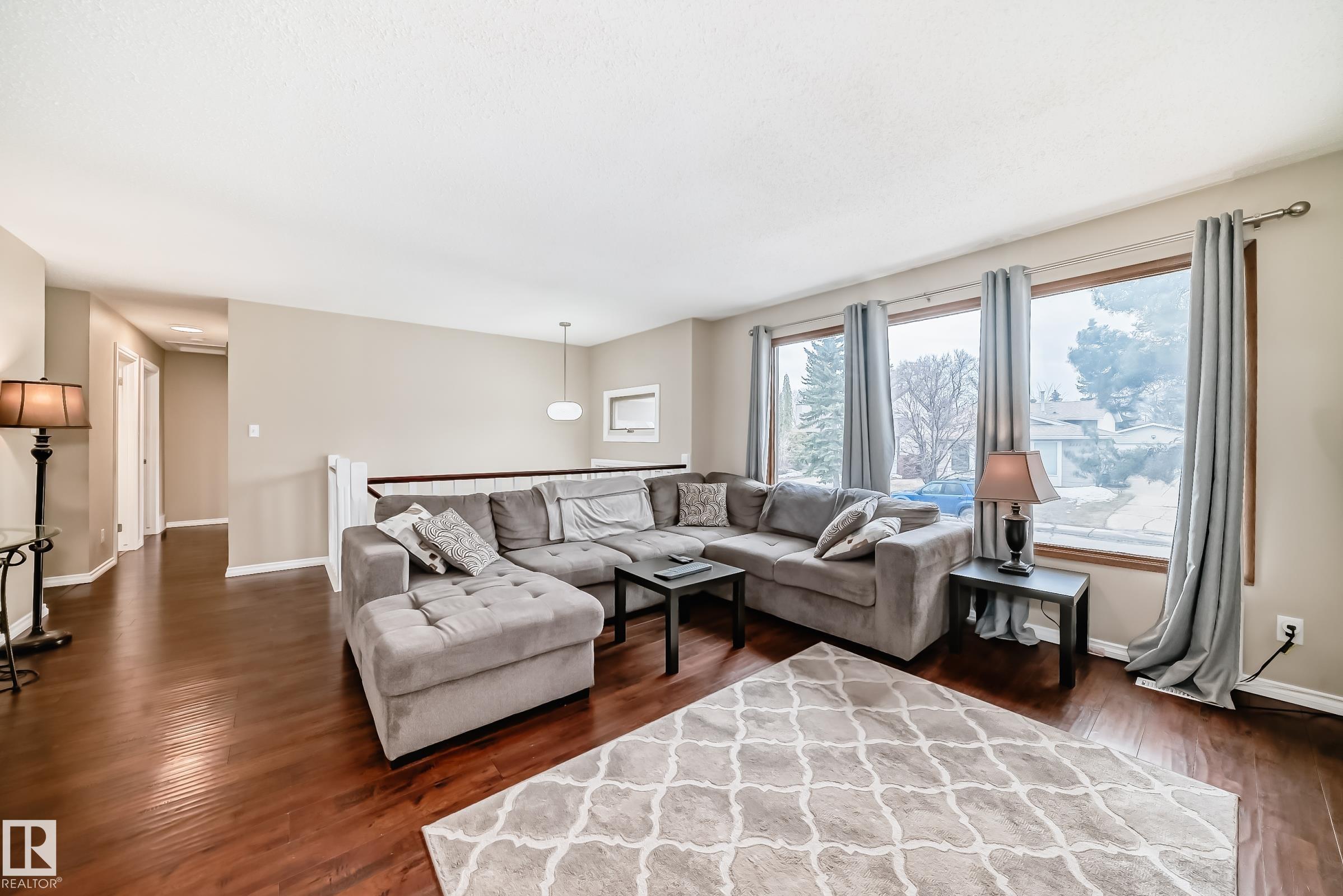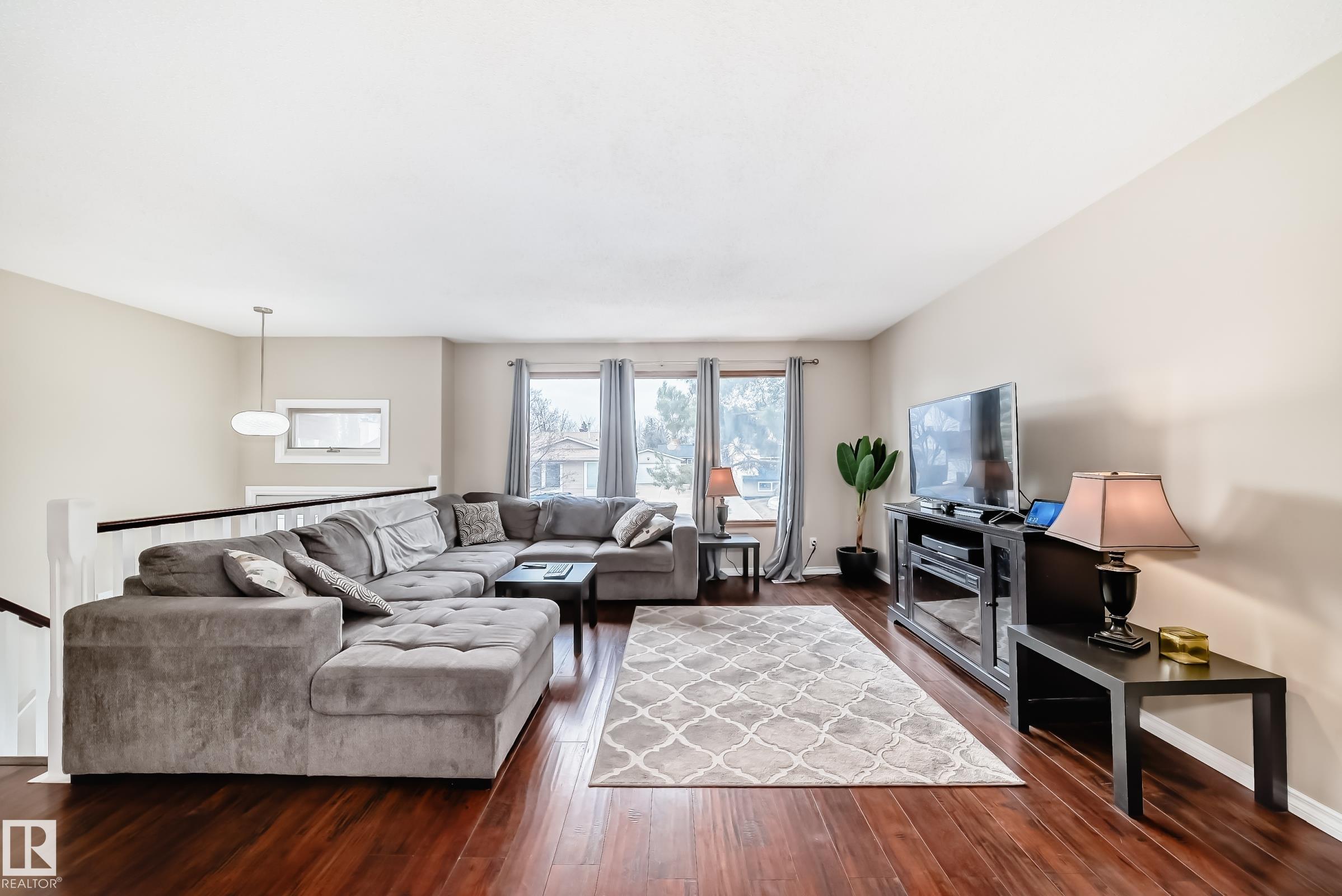The Wait is Over for Your Perfect Family Home! This immaculate, upgraded bi-level in Bannerman offers the ideal blend of comfort, style, & location. Situated w/n walking distance to Edmonton's expansive river valley, schools, transit, & more, this home is perfect for growing families.Step inside to a bright & welcoming floor plan featuring newer vinyl plank flooring & updated baseboards throughout. The front entrance showcases stunning upgraded railings, while the sunny living room is filled w/ natural light from floor-to-ceiling windows.The main level offers 3 spacious bedrooms, including a primary suite complete w/ its own ensuite. A fully renovated, modern main bath adds both style & functionality. Downstairs, the fully finished basement boasts a huge family room--perfect as a recreation space or kids' play area. You'll also find a generously sized 4th bedroom, bathroom, & a laundry room equipped w/ upgraded washer and dryer, plus storage. Outside, enjoy a massive corner lot featuring double garage. MLS®: E4482323 - Bannerman Bi-Level $425,000