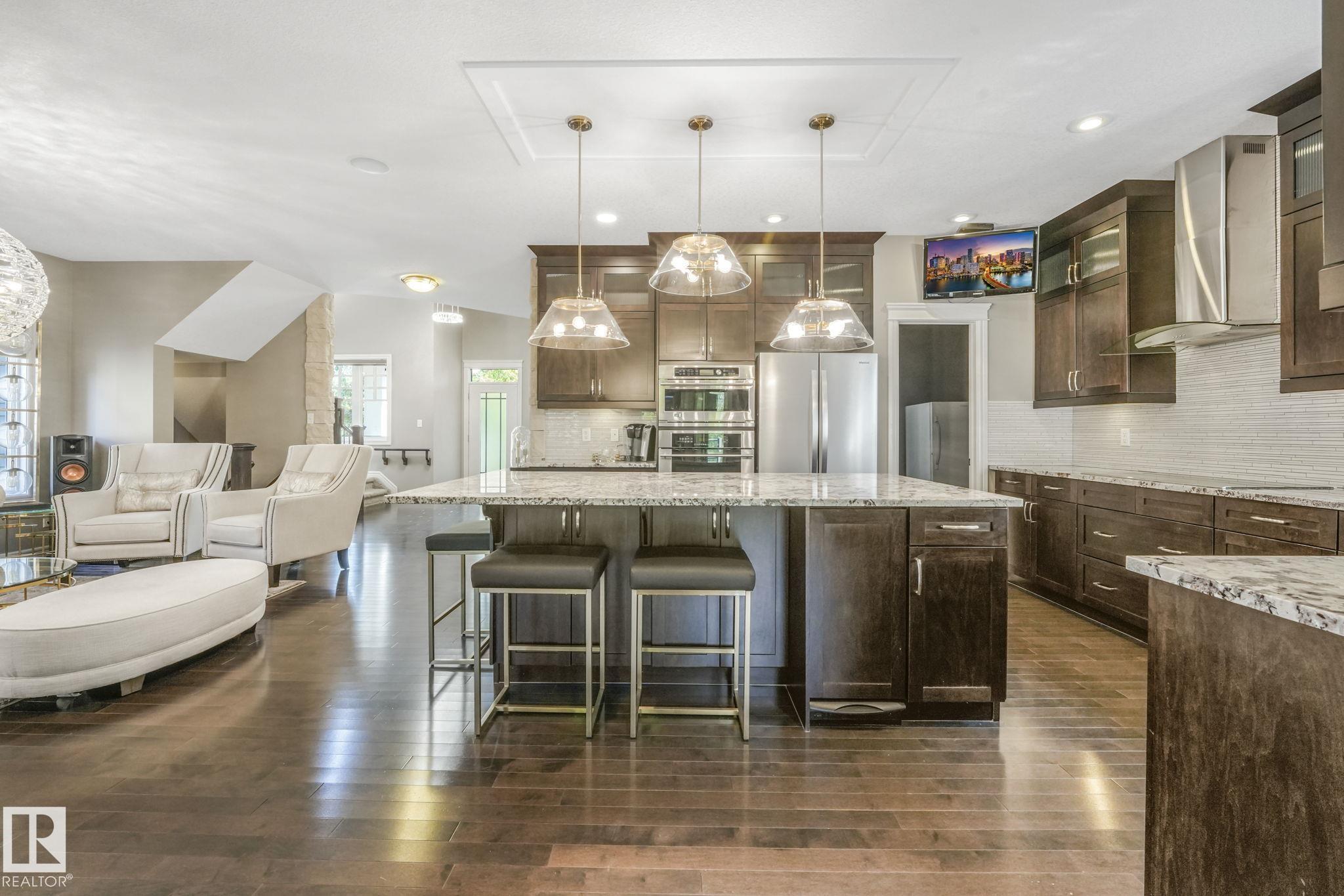 Executive WALKOUT property backing onto the Wedgewood Ravine COMES FULLY FURNISHED !- VIEWS FROM EVERY LEVEL! This upgraded luxury home has 4 bdrms + bonus room & den, 3.... MLS®: E4484342 - Cameron Heights (Edmonton) 2 Storey $1,299,888