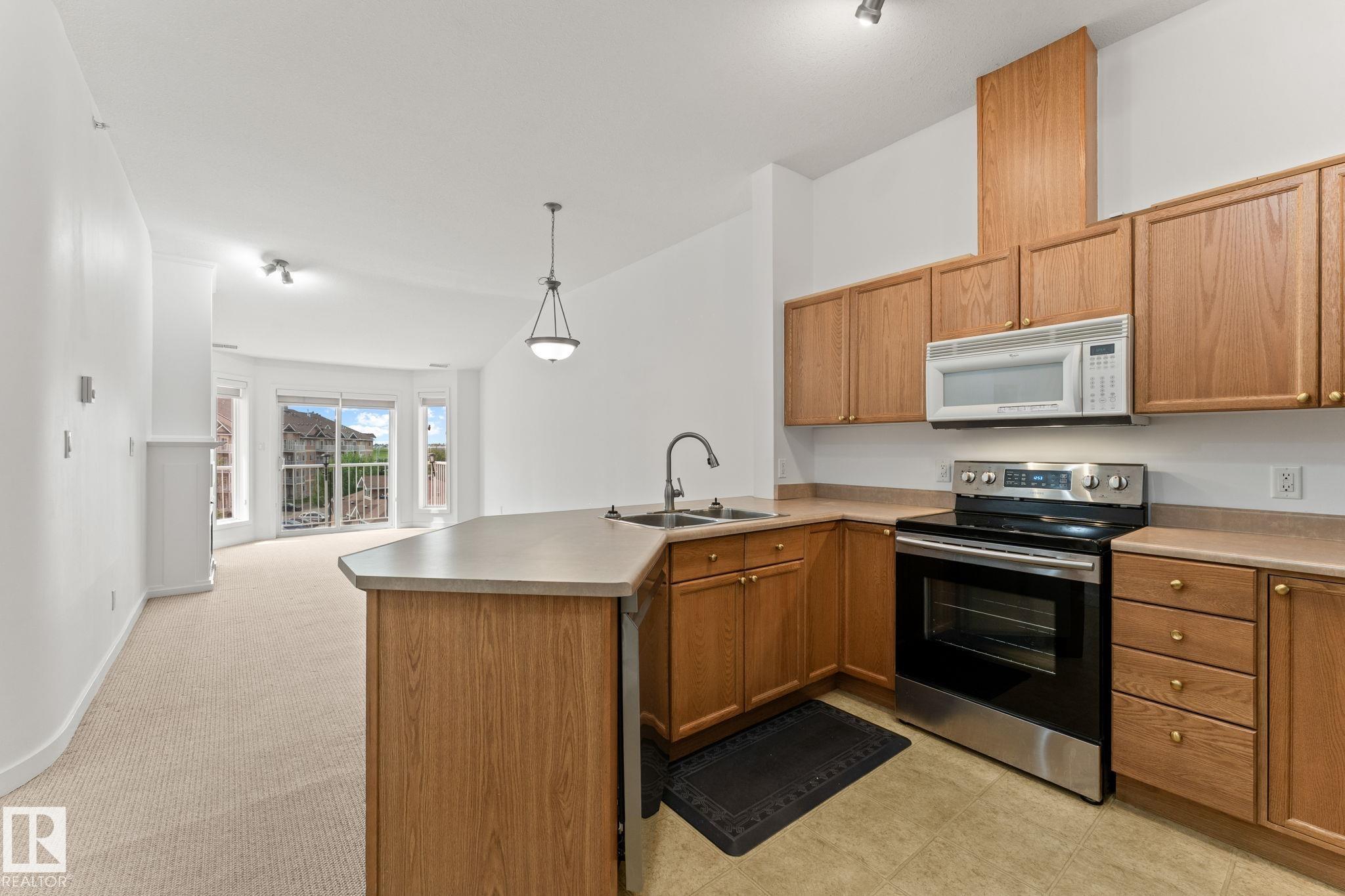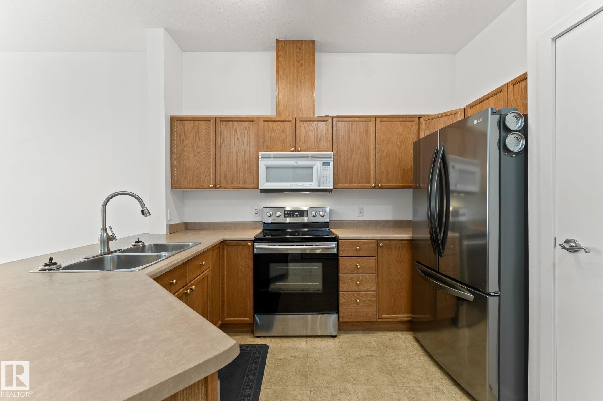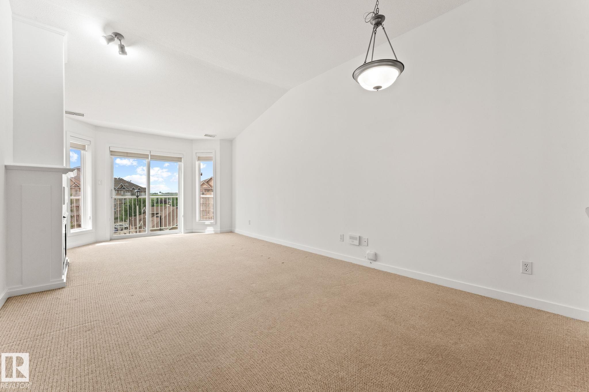 Welcome to the Estates of Clareview! This bright and spacious TOP FLOOR 2 bedroom, 2 bathroom SOUTH FACING condo features VAULTED CEILINGS, and cozy gas FIREPLACE. The open-concept layout includes a functional kitchen with oak cabinets and SS appliances, a generous living area, and in-suite laundry for added convenience. The primary bedroom offers a walk-through closet and full ensuite bathroom. The second bedroom is ideal for guests, an office, or a roommate setup with the second full bath nearby. Includes underground heated parking with a storage cage right in front of the stall. Unbeatable location, literally steps from Clareview LRT TRAIN STATION (perfect for University students, and downtown professionals), shopping, restaurants, and all amenities. Well-managed, pet-friendly complex with a FULL GYM, REC ROOM and social room for special occasions. NEW FRESH COAT OF PAINT professionally done for the new owners. Move-in ready and perfect opportunity for first-time buyers, students, or investors! MLS®: E4468228 - Clareview Town Centre Single Level Apartment $174,900