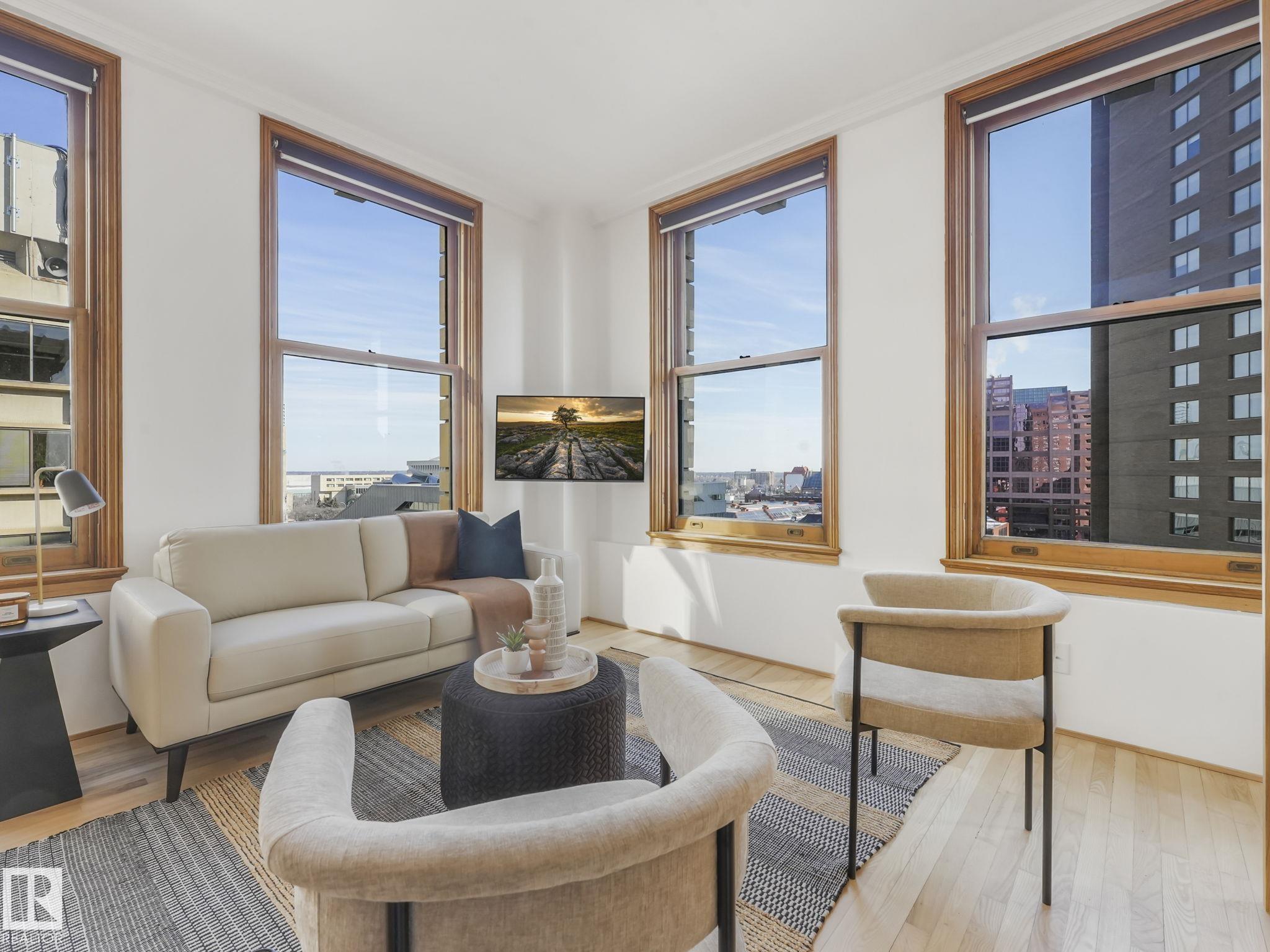 Gorgeous EXECUTIVE LOFT in The McLeod Building. 1915 CHARACTER with CONTEMPORARY VIBE in the CORE! This UNIQUE CORNER UNIT on the 8th FLOOR (sub-penthouse) features soari... MLS®: E4480451 - Downtown (Edmonton) Single Level Apartment $299,900