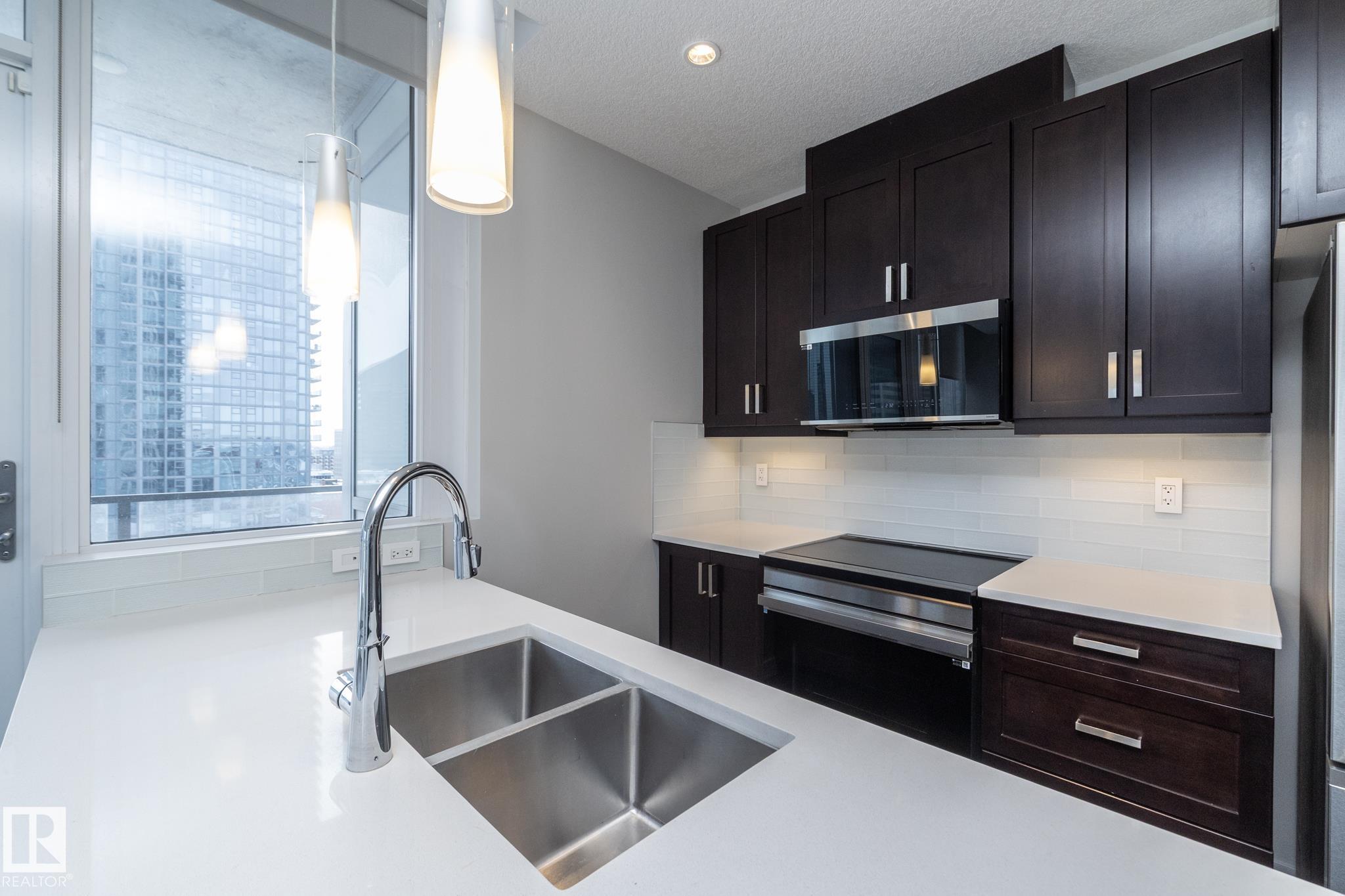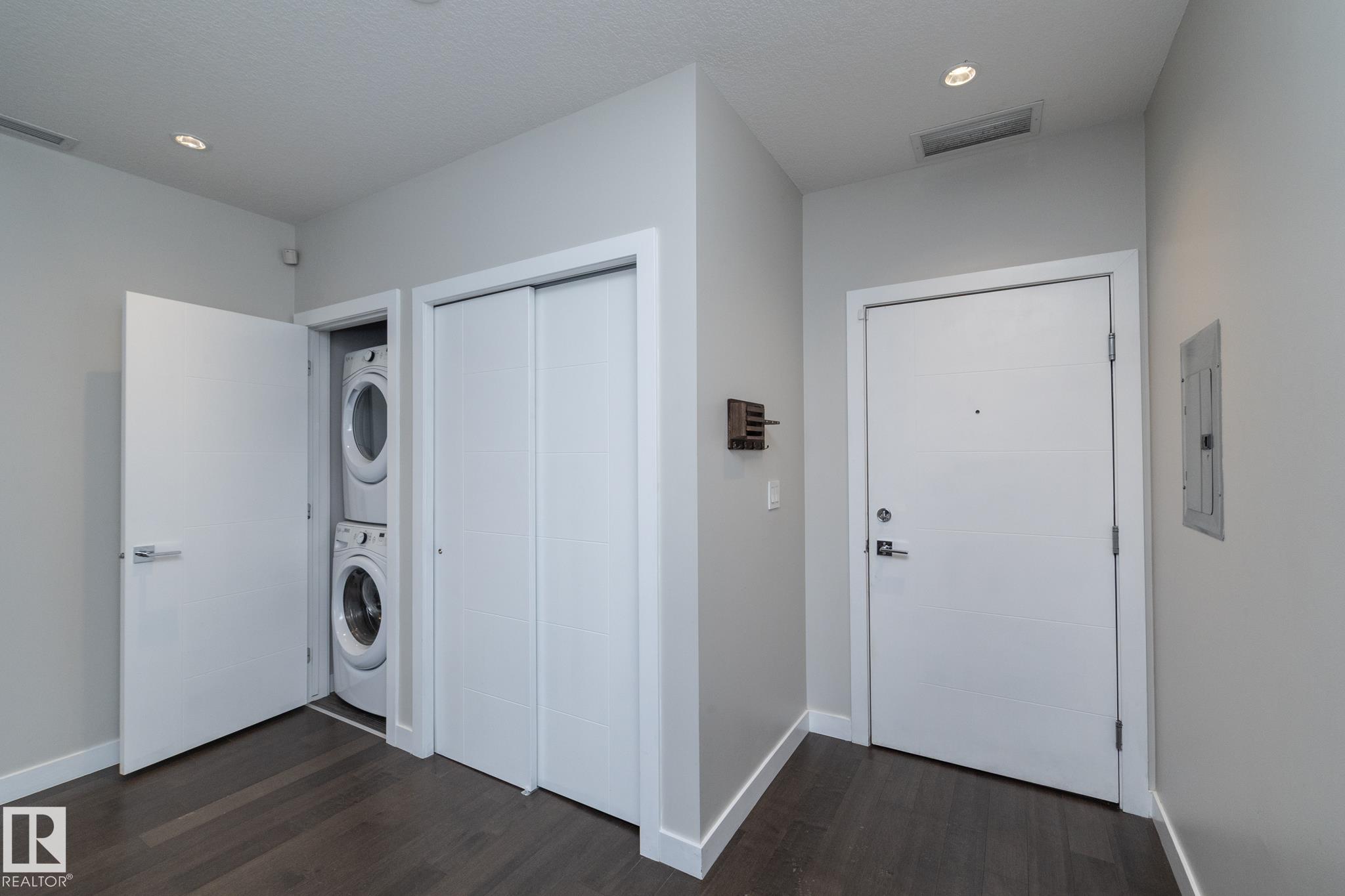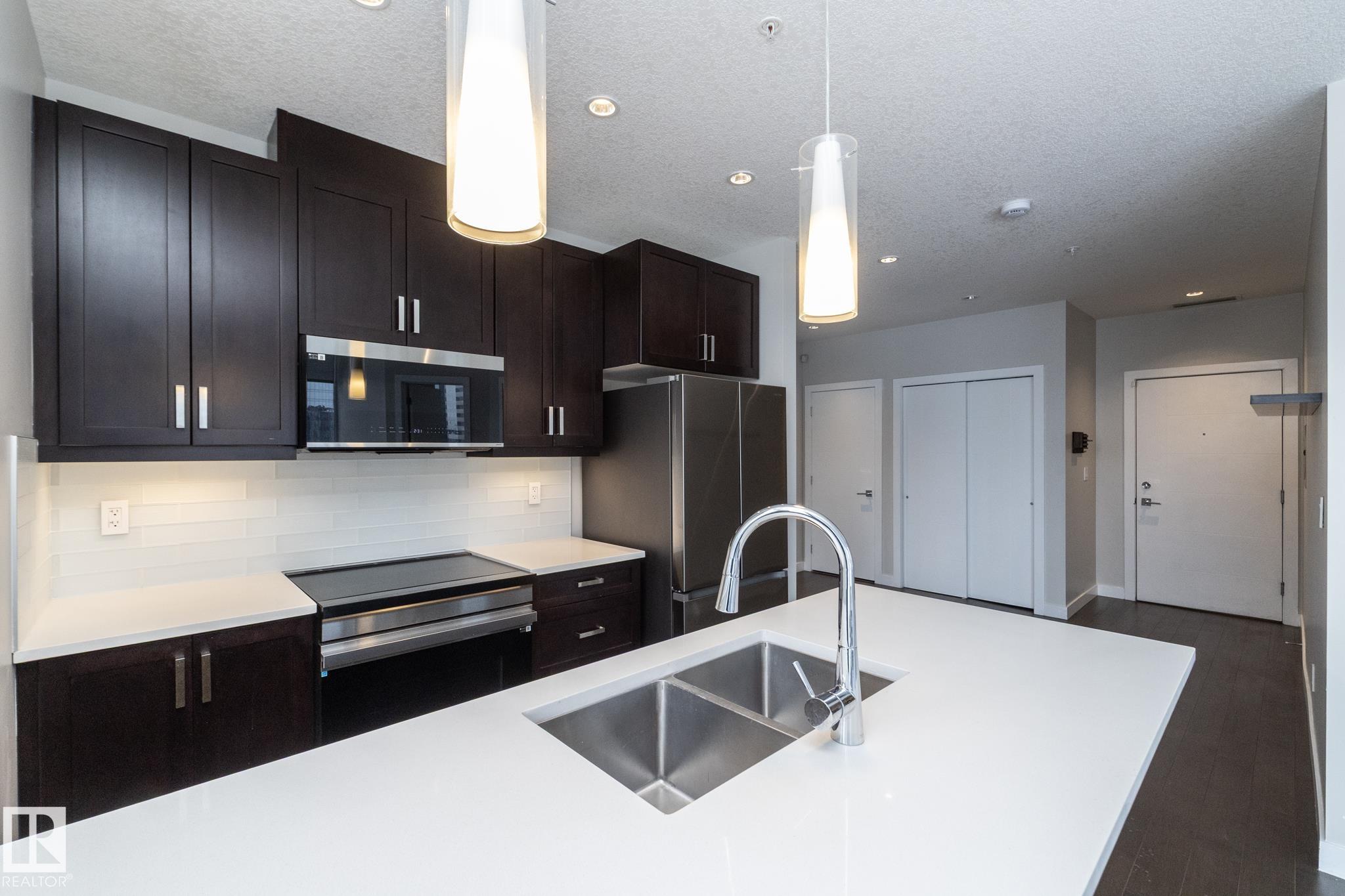 Includes: Dishwasher-Built-In, Dryer, Microwave Hood Fan, Refrigerator, Stove-Electric, Washer, Window Coverings Site Influences: See Remarks Property InformationProperty Type: Apartment High Rise Home Style: Single Level Apartment Year Built: 2016 Total Floor Area: 809 sq. ft. Brokerage: Exp Realty Listed Date: Please login or create an account Community InformationCity/Town: Edmonton Community: Downtown (Edmonton) ExteriorLot Size: 0.00 sq.ft. Exterior: See Remarks Front Exposure: East Roof: EPDM Membrane Parking: Heated, Parkade, Underground InteriorHeating: Y Basement: None, No Basement Floor Finish: Ceramic Tile, Hardwood RoomsTotal Bedrooms: 2 (Bedrooms Above: 2) Bathrooms: Full: 2 / Half: 0 Above Grade: 5 Legal, Financial & PossessionLegal Description: Lot/Unit: Lot/Unit:,Plan:Block: Monthly Fee: 594 Listing Courtesy of Mathew Haupt, Nathan Richter / Exp Realty Copyright 2026 by the REALTORS® Association of Edmonton. All Rights Reserved. Data is deemed reliable but is not guaranteed accurate by the REALTORS® Association of Edmonton. Data was last updated April 15, 2026, 6:50 pm. MLS®: E4482432 - Downtown (Edmonton) Single Level Apartment $350,000