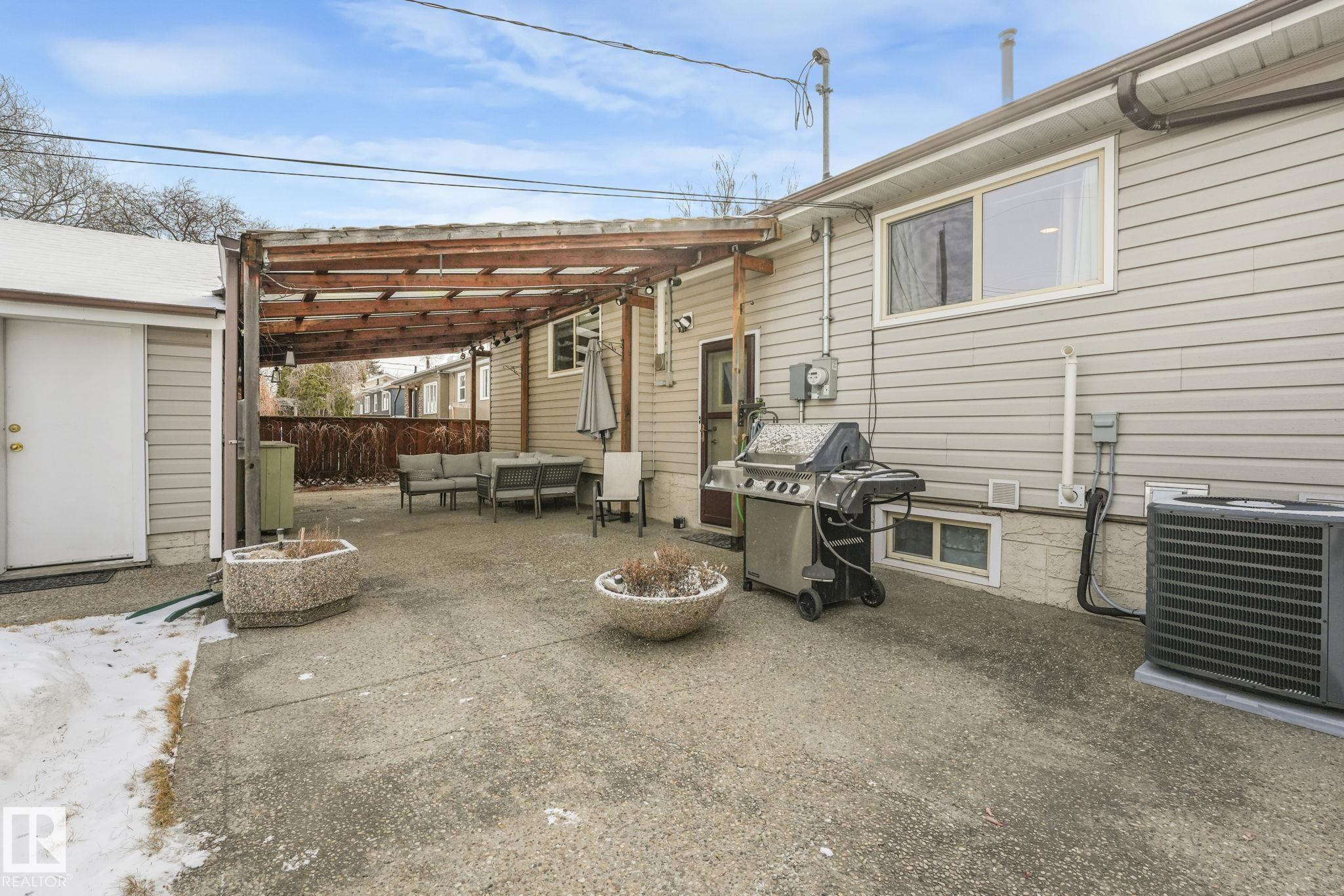 Here's your perfect opportunity - don't let it slip away! This STUNNING - beautifully maintained and upgraded 3 + 1 bed & 2 bath, 983 sq ft bungalow is ideal for first time buyers, families or investors alike! Located on a quiet street in Mayfield, the main floor features a spacious living room & dining room with gleaming re-finished original hardwood, functional kitchen, primary bedroom + 2 more beds and is completed by a 4 pce bath. The basement boasts a HUGE rec room, den/storage room, one more bedroom and a laundry room with 3 pce bath. Enjoy relaxing summer evenings under the serene and private pergola in your backyard on the massive exposed aggregate patio, the backyard is finished with a double detached garage to keep your vehicle out of the snow in winter. Other UPGRADES include: 100 amp service (2021); New Furnace (2022); New A/C (2022); New Fencing (2023), insulation (2021), new front steps (2023). In close proximity to parks, schools, shopping, public transportation, WEM! MLS®: E4477786 - Mayfield Bungalow $379,900