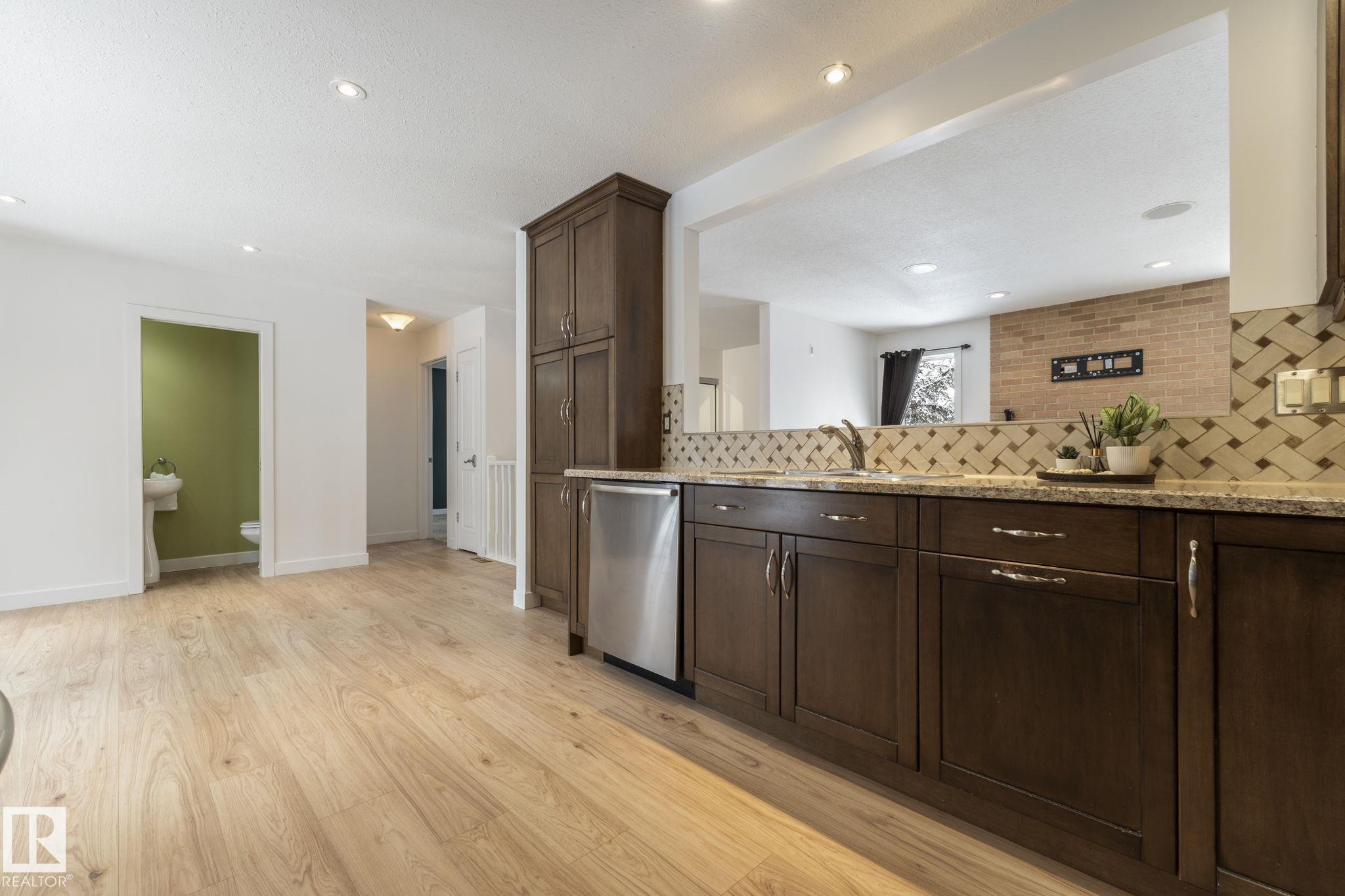 The perfect downsizer property! Upgraded in all the right places, this bungalow delivers style & comfort. The expansive kitchen is the heart of the home, fully renovated w/an abundance of cabinetry to the ceiling w/ glass inserts offering exceptional storage & a modern feel. It flows effortlessly into the dining area with a peek-a-boo opening to the inviting living rm w/ fireplace. The Primary retreat features walk-through closets & a spa-like 5pce ensuite w/dual sinks, a separate tub & shower & in-floor heat, plus direct access to the huge deck & hot tub covered by a pergola in a sunny south facing yard, your own private escape. Fresh flooring & 2-pce powder rm completes the main level. The fully finished bsmt includes 2 more bdrms, cozy rec room w/ gas fireplace & 2nd full bath. Extras include: new roof, tankless water heater, built-in surround sound speakers w/ receiver, WiFi lock, timer switches, USB outlets, upgraded attic insulation, great cul-de-sac location & heated double garage. Don't miss out! MLS®: E4480085 - Ormsby Place Bungalow $458,800