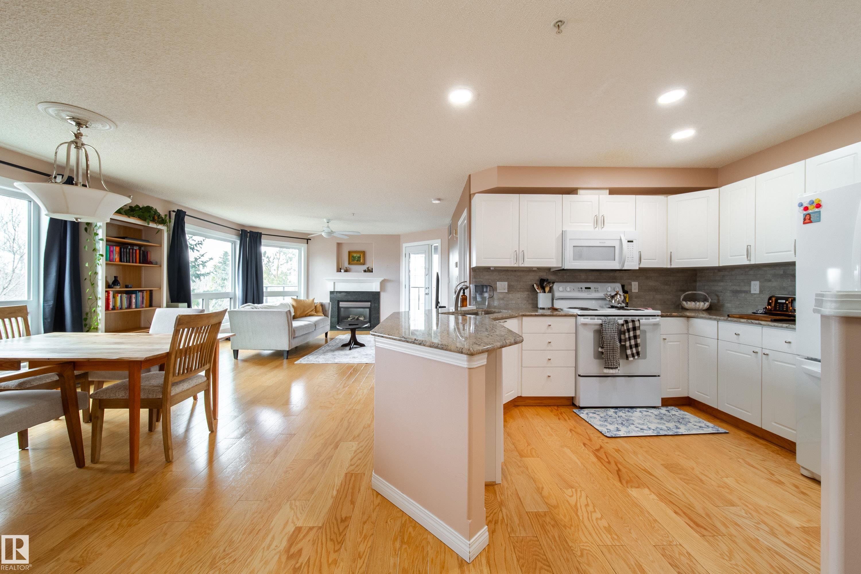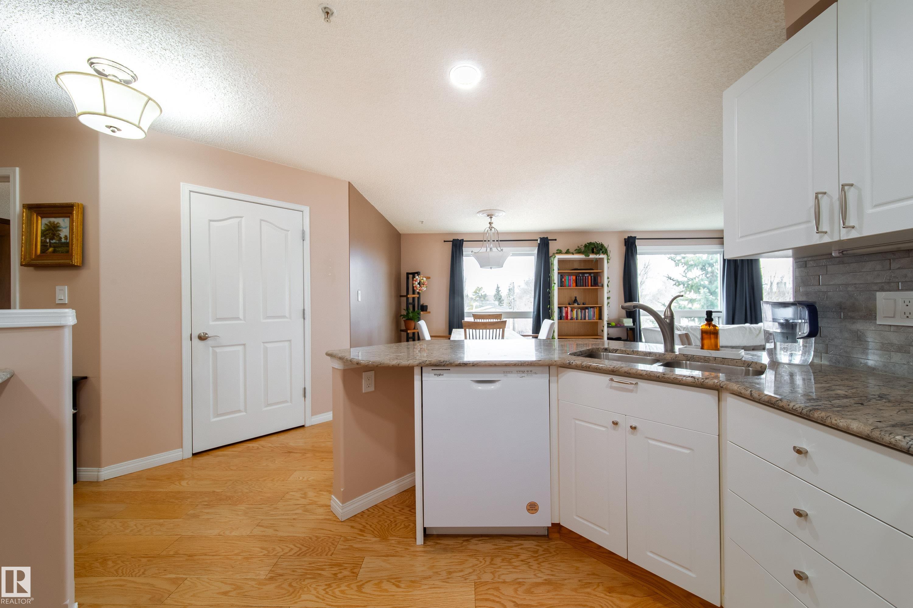 This bright 4th floor corner unit offers an open and spacious layout with beautiful hardwood floors and large windows that fill the home with natural light. The primary b... MLS®: E4478566 - Ritchie Single Level Apartment $335,000