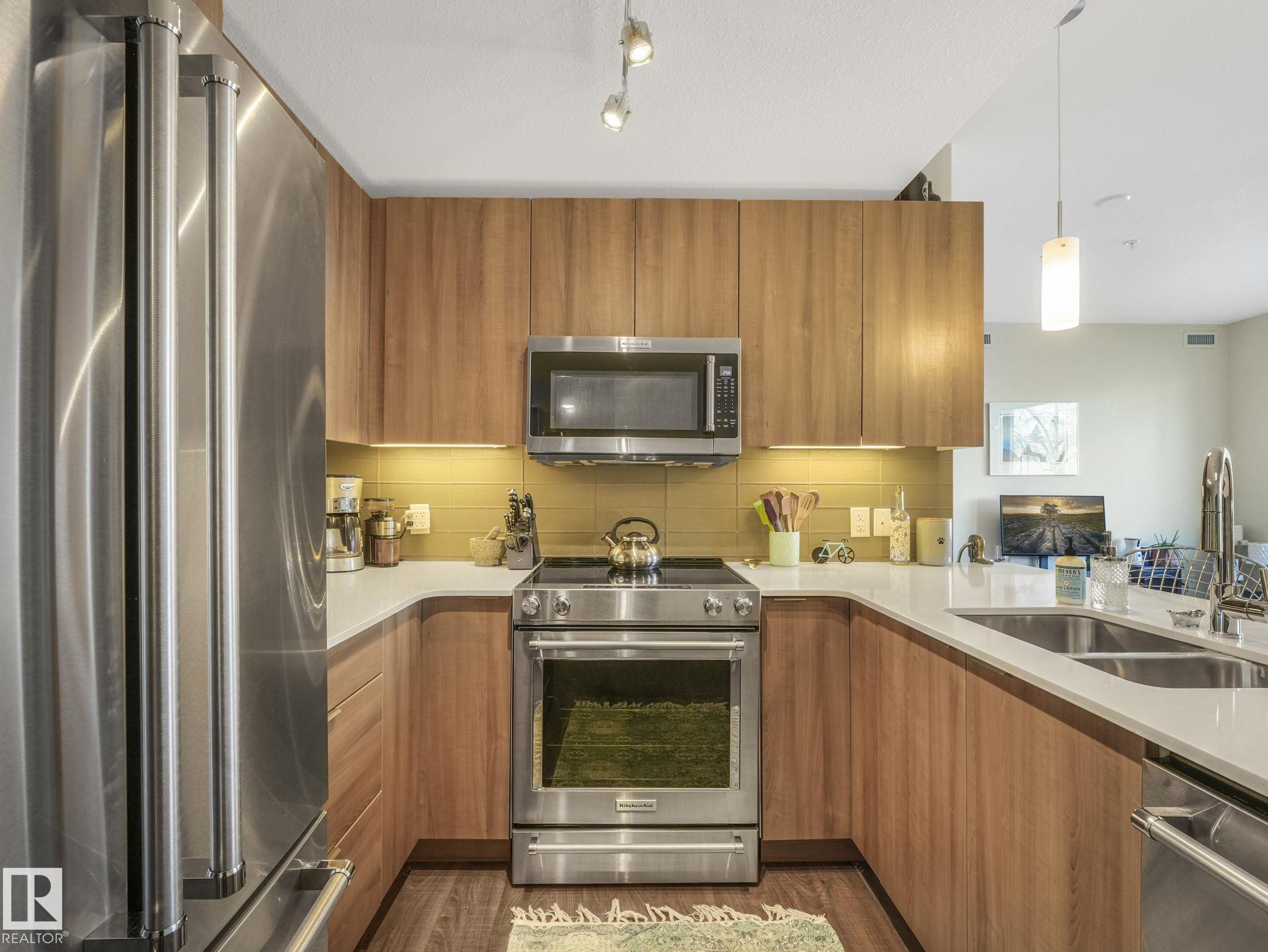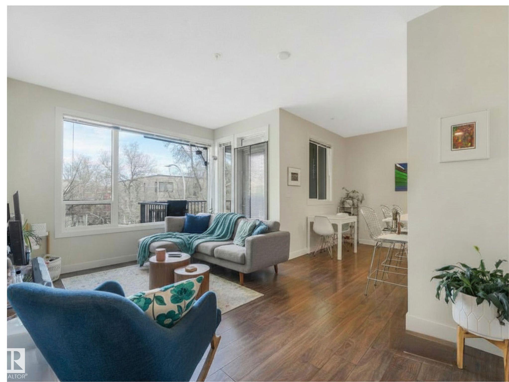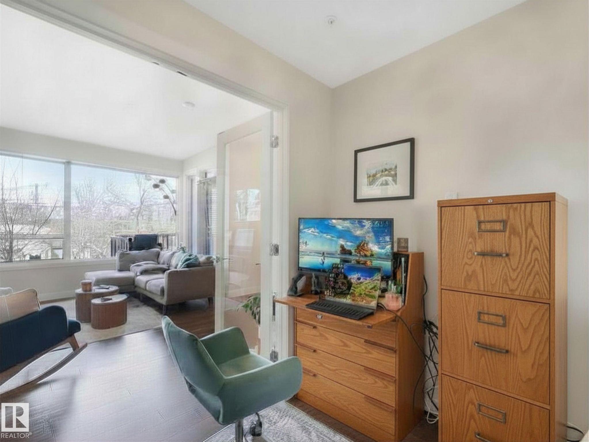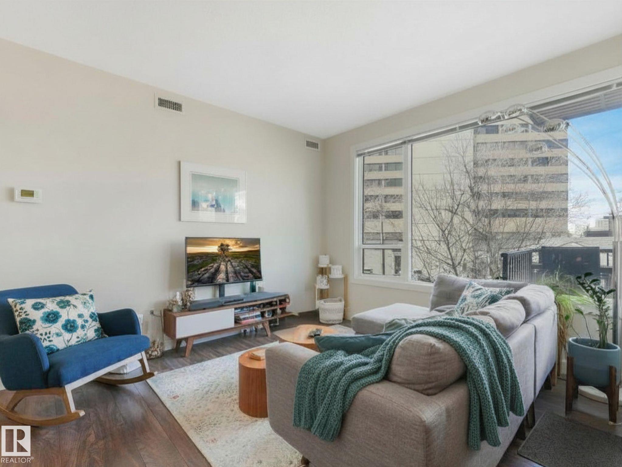 Welcome to Studio On The Hill! Step out your door into the vibrant energy of Whyte Ave and Old Strathcona. Enjoy top-tier dining, trendy cafes, and scenic River Valley trails all just steps away. This spacious air conditioned 690 sq. ft. 1-bed + den condo offers a versatile layout perfectly tailored for today's dynamic lifestyle. Work From Home? The flexible den is the ultimate home office, guest space, or extra storage. The open concept is complemented by the warm tones of the modern kitchen featuring stainless steel appliances, quartz countertops, under cabinet lighting and a peninsula island. Retreat to the primary bedroom, complete with a walk-in closet and custom shelving. Say goodbye to winter mornings scraping ice with your highly-coveted, oversized heated parking stall! Located in a well-managed building, this home is ideal for first-time buyers or young professionals seeking a low-maintenance, walkable lifestyle. Live, work, and play in one of the city's best communities! MLS®: E4482036 - Strathcona Single Level Apartment $259,000
