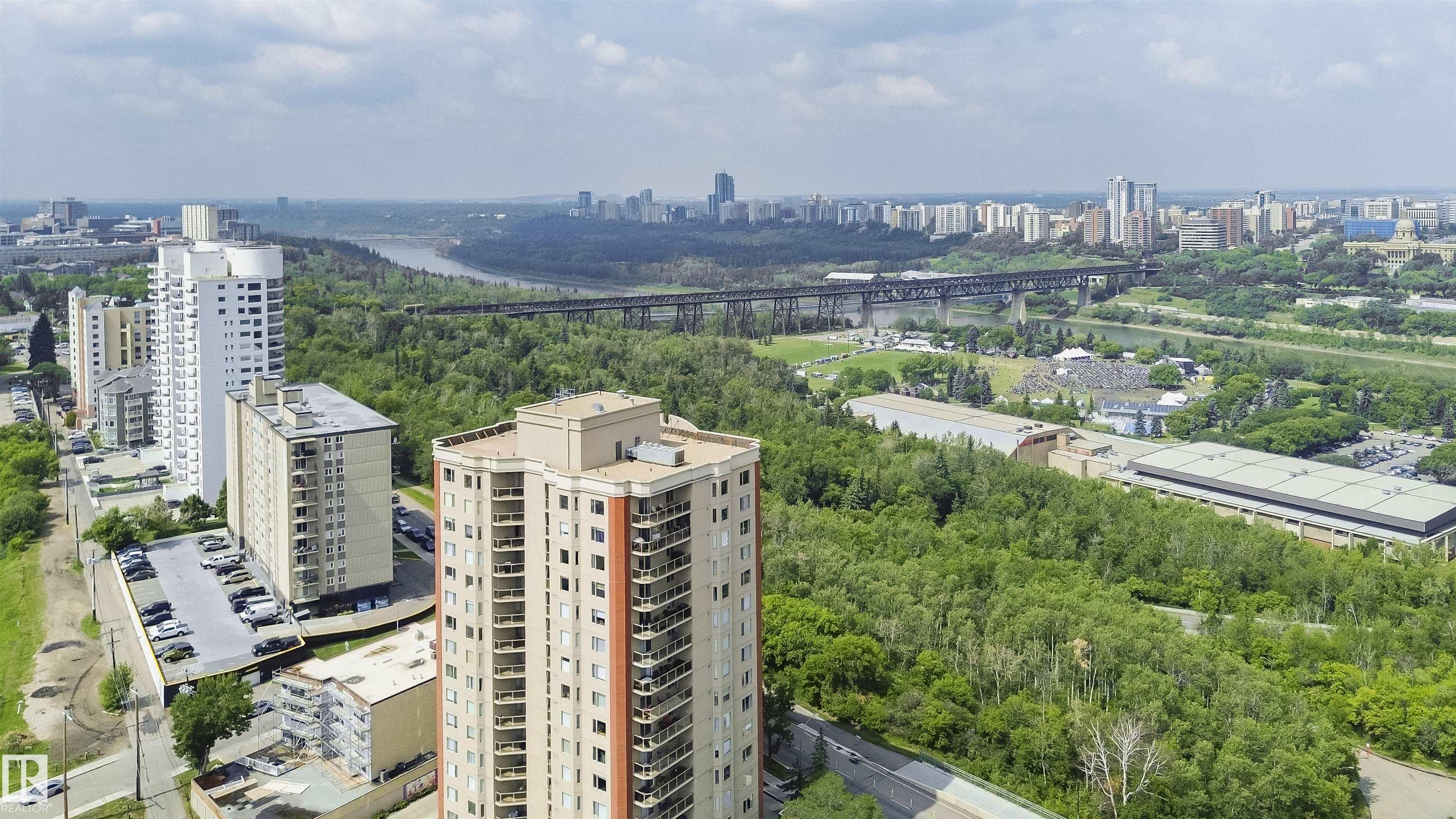 Corner penthouse suite with panoramic views of the river valley and downtown skyline, perfect for professionals working at the U of A or downtown. Sunlight floods the spa... MLS®: E4483829 - Strathcona Single Level Apartment $399,900