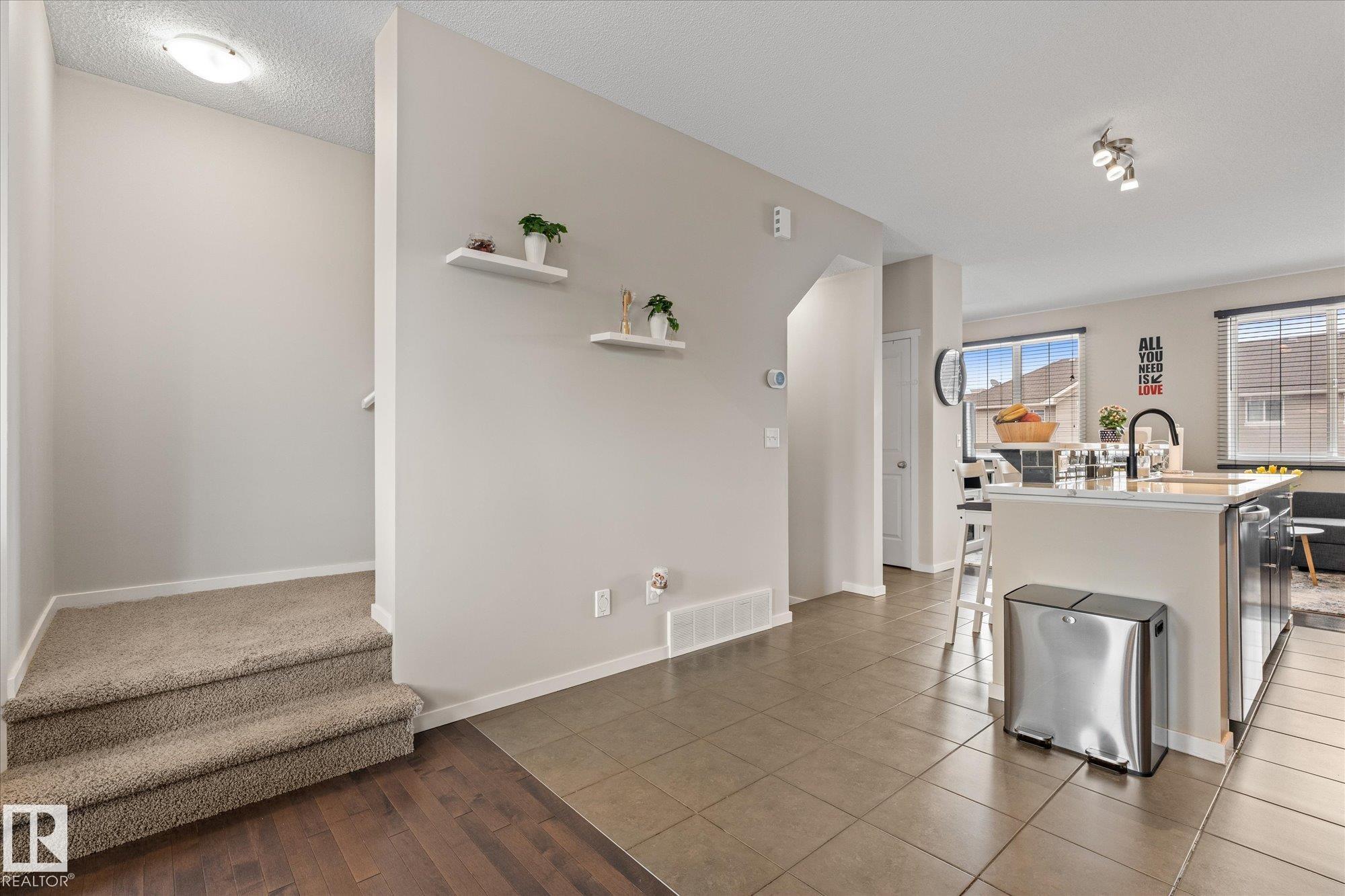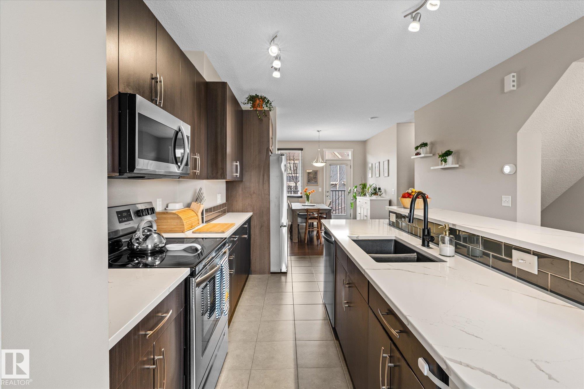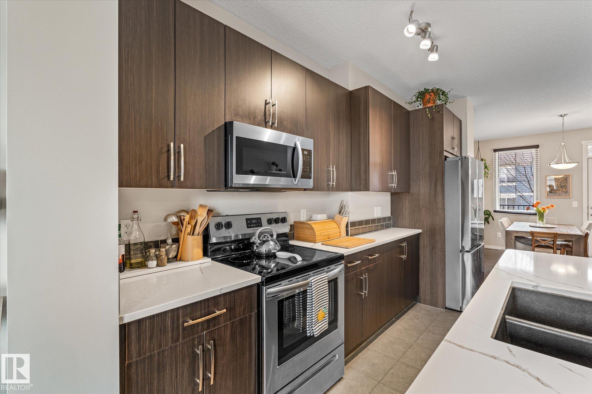 Welcome to this stunning 3-storey modern corner unit townhouse in the vibrant community of Walker Lakes. Thoughtfully designed with space, light, and functionality in mind, this home offers a versatile ground-level den--perfect for a home office, gym, media room, or play space. The main living area is bright and open, featuring hardwood and ceramic flooring, a spacious kitchen with abundant cabinetry and expansive counter space, and a flexible bonus area ideal for work or family life. Large windows throughout flood the home with natural light. Upstairs you'll find a private primary retreat complete with a 3-piece ensuite and walk-in closet, along with two additional well-sized bedrooms and a full 4-piece bath. Stay comfortable year-round with added air conditioning. Enjoy the convenience of a double attached garage plus driveway parking for two more vehicles. A perfect blend of style, function, and location--this is the one you've been waiting for! MLS®: E4481329 - Walker 3 Storey $349,900