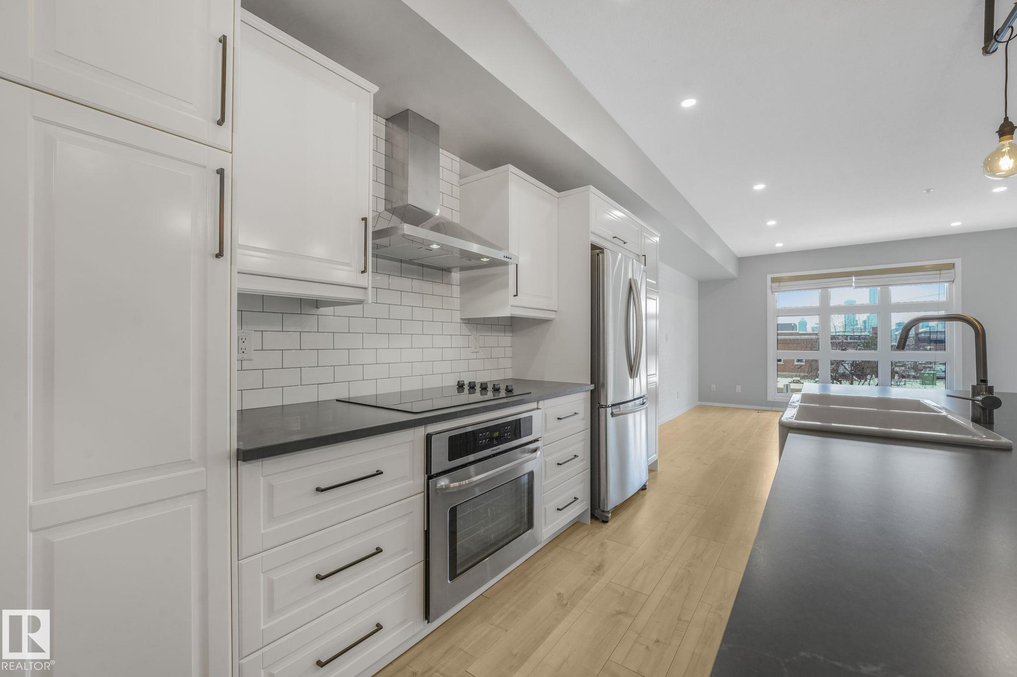 RENOVATED! Elevated condo living in this fully renovated 2-bedroom condo. Modern design meets timeless elegance. The open-concept layout with huge windows that flood the space with natural light, creating an airy and bright atmosphere. The stunning kitchen has been completely updated with sleek cabinetry, quartz countertops, and stainless steel appliances, seamlessly flowing into the living and dining areas--perfect for entertaining or everyday comfort. Every detail has been thoughtfully curated, including all-new designer light fixtures throughout. The spa-inspired bathroom offers a true retreat with a luxurious soaker tub and a separate stand-up shower. Additional highlights include in-suite laundry and secure underground parking, providing both convenience and peace of mind. Completely move-in ready, this refined condo delivers modern luxury, comfort, and style in one exceptional package. Walkable to stores, restaurants and events. Great access to downtown and easy access to exit downtown. MLS®: E4476980 - Westmount Single Level Apartment $300,000