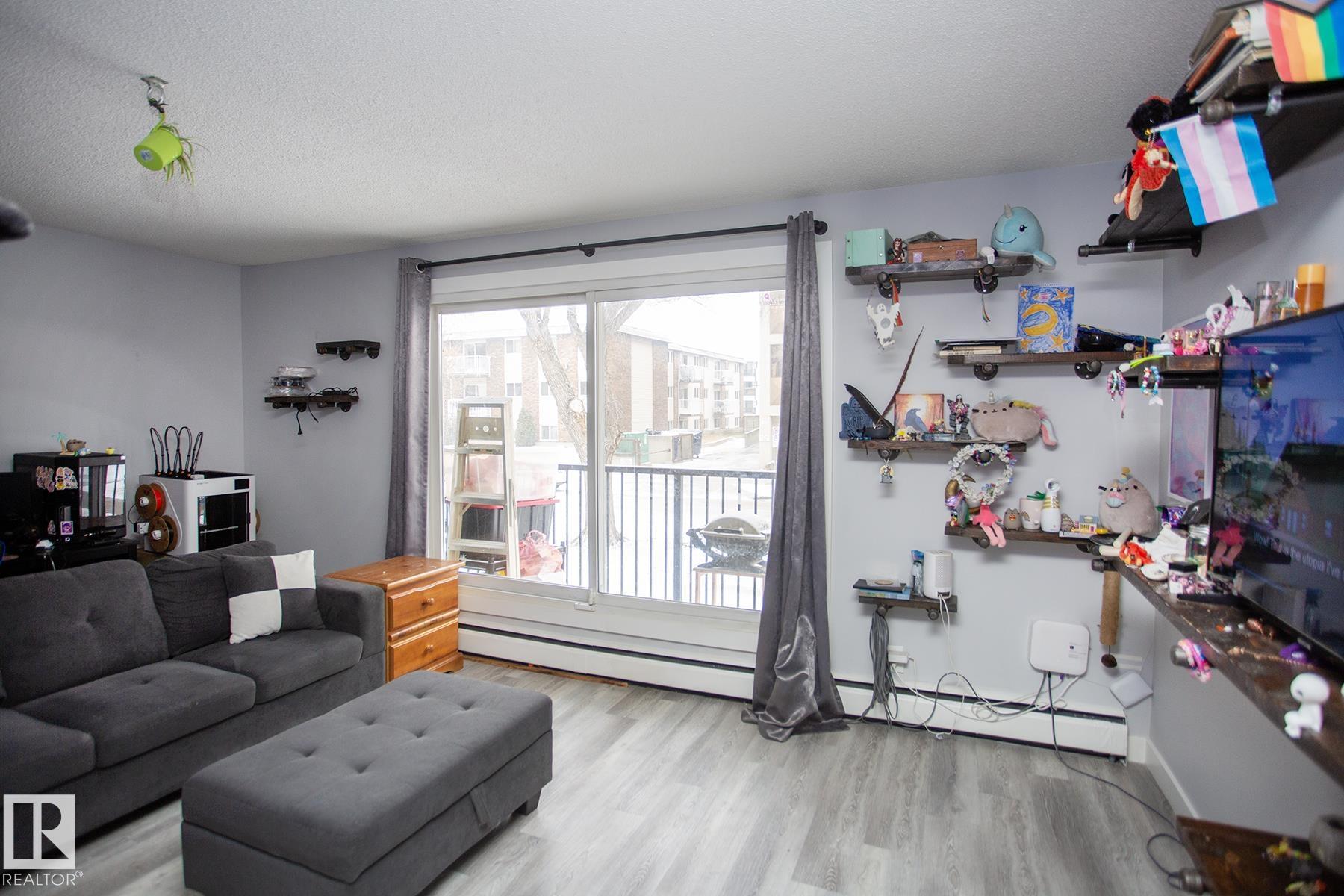 Imagine not paying rent, investing in your future instead! First-time buyer, savvy investor, or looking for your own stylish pied-…-terre, this home checks all the boxes. Steps from the vibrant 124th Street, you'll love having some of Edmonton's best boutiques, caf‚s, and restaurants right outside your door. Head the other direction and you'll find the Brewery District, with even more amenities, groceries, and fitness options. And just a few minutes beyond that--welcome to the BOOMING Ice District, putting downtown excitement, Rogers Place, and nightlife within easy reach. Renovated condo offers immediate possession and a fresh, modern feel. The spacious living area is filled with natural light - the perfect place to relax or entertain. A newer kitchen adds style and functionality, while the generously sized bedroom creates a comfortable retreat at the end of the day. You'll also appreciate in-suite laundry, an assigned parking stall, and a private balcony. Located in a quiet, solid building. MLS®: E4483650 - Westmount Single Level Apartment $115,000