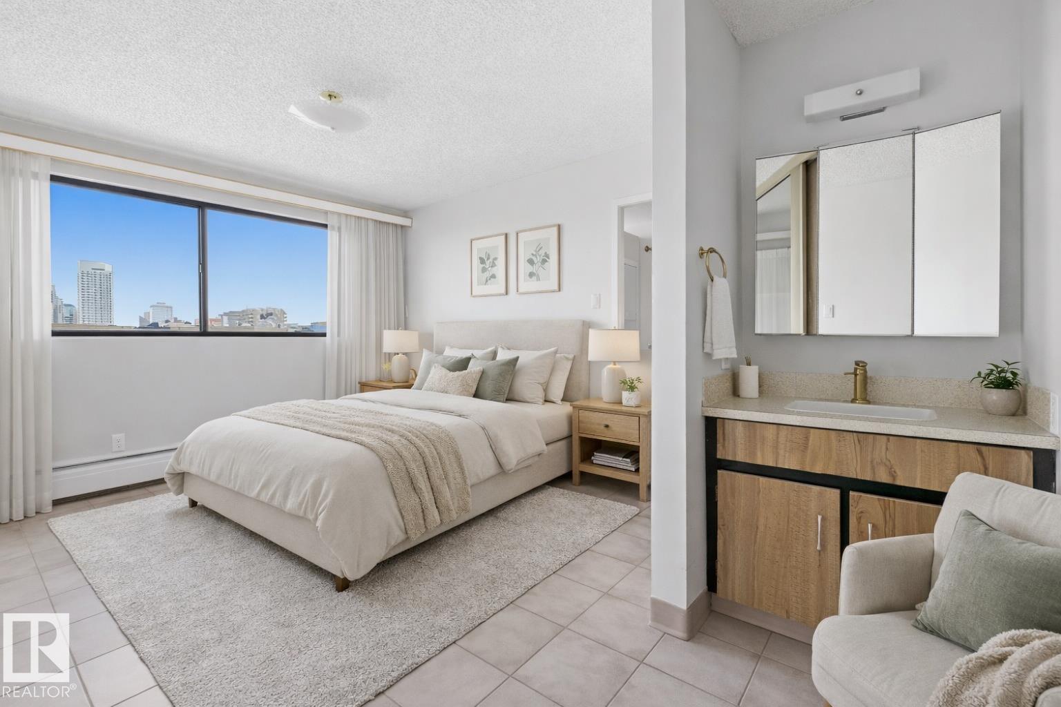 YOUR DOWNTOWN LIFESTYLE AWAITS! This spacious 2 bedroom & 1 bath concrete 8th floor condo in the B & H Tower is perfect for students, professionals or couples. Main features are: 1,128 sq.ft. of living space, large living room, efficient galley kitchen and generous dining area with sliding doors to a fully enclosed balcony with an awesome view of Downtown! Extra bonus: sink in the primary bedroom, easy care flooring throughout, in-suite laundry, visitor parking and extra storage. You will enjoy an underground parking stall and ALL utilities which are included in condo fees. This fantastic location will be your epicenter to Brewery District, Rogers Place and the Downtown core with all the shops, galleries and fine dining. Quick access to Grant MacEwan, U of A and NAIT via ETS and LRT. Note: some photos have been virtually staged. MOVE IN READY WITH QUICK POSSESSION! MLS®: E4477273 - Wîhkwêntôwin Single Level Apartment $185,000