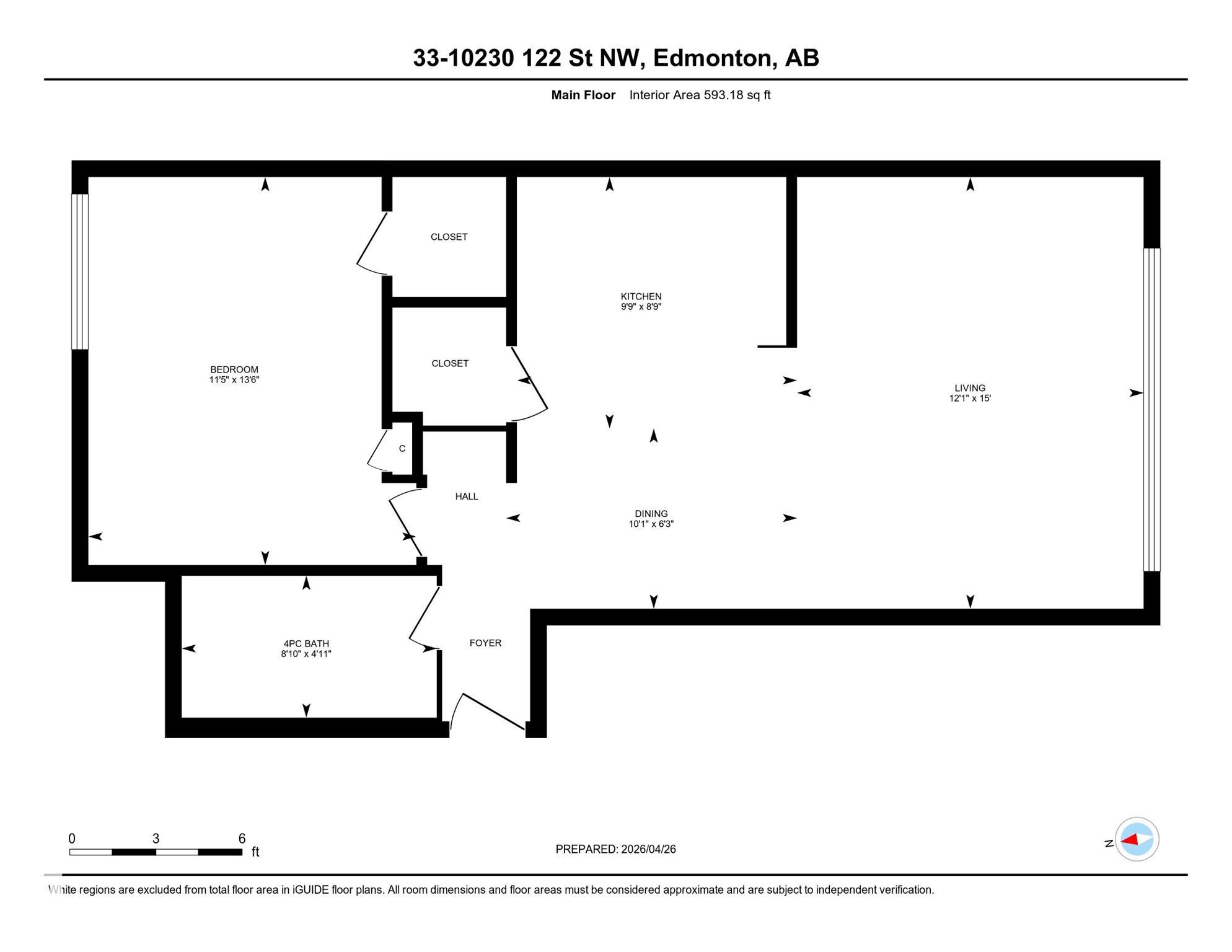 Includes: Fan-Ceiling, Refrigerator, Stove-Electric Site Influences: Backs Onto Lake, Flat Site, Golf Nearby, Landscaped, Playground Nearby, Public Transportation, Schools, Shopping Nearby Property InformationProperty Type: Lowrise Apartment Home Style: Single Level Apartment Year Built: 1964 Total Floor Area: 593 sq. ft. Brokerage: Royal Lepage Premier Real Estate Listed Date: Please login or create an account Community InformationCity/Town: Edmonton Community: Wîhkwêntôwin ExteriorLot Size: 0.00 sq.ft. Exterior: Backs Onto Lake, Flat Site, Golf Nearby, Landscaped, Playground Nearby, Public Transportation, Schools, Shopping Nearby Front Exposure: East Roof: Tar & Gravel Parking: Stall InteriorHeating: Y Basement: None, No Basement Floor Finish: Hardwood, Linoleum RoomsTotal Bedrooms: 1 (Bedrooms Above: 1) Bathrooms: Full: 1 / Half: 0 Above Grade: 4 Legal, Financial & PossessionLegal Description: Lot/Unit: Lot/Unit:,Plan:Block: Monthly Fee: 364 Listing Courtesy of Marcie Bull / Royal Lepage Premier Real Estate Copyright 2026 by the REALTORS® Association of Edmonton. All Rights Reserved. Data is deemed reliable but is not guaranteed accurate by the REALTORS® Association of Edmonton. Data was last updated April 26, 2026, 3:30 pm. MLS®: E4484305 - Wîhkwêntôwin Single Level Apartment $115,000