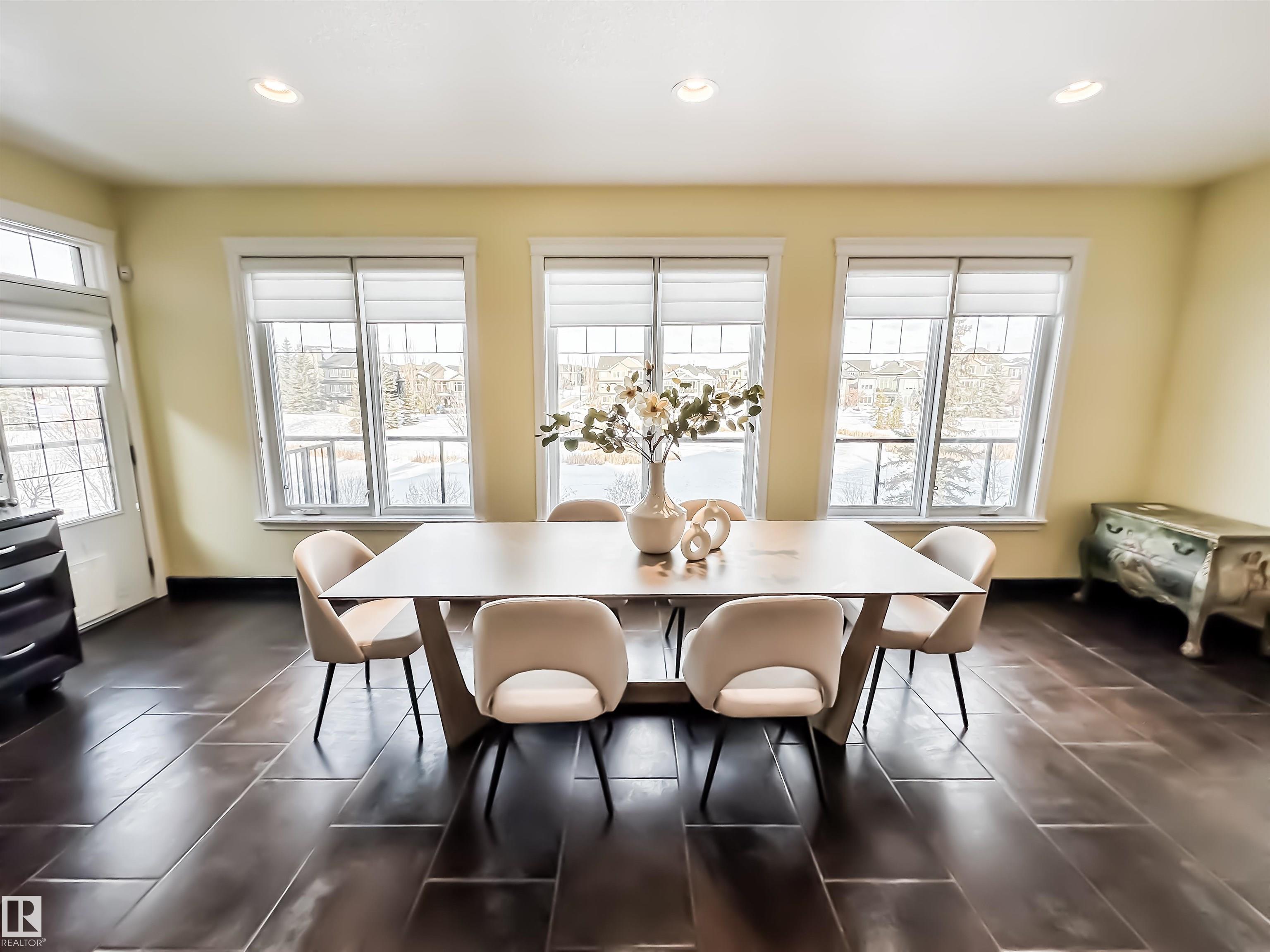 POND-BACKING WALKOUT WITH TRIPLE GARAGE IN WINDERMERE Homes like this are defined as much by their setting as their space. Backing directly onto the pond, this 3,346 sqft walkout two-storey offers a rare combination of privacy, views, and flexibility for modern living. The main floor is designed with expansive windows framing the water and an open layout connecting the living, dining, and kitchen spaces. The kitchen is both functional and refined, with double islands, dual sinks, a generous walk-in pantry, and subtle in-floor heating for added comfort. Upstairs, the primary suite offers a private balcony with pond views, a spacious ensuite, and a large walk-in closet, alongside a bonus room with wet bar, two additional bedrooms, and laundry. The walkout basement adds versatility with in-floor heated epoxy floors, a bedroom, full bath with steam shower, and flexible living space. Set near schools, walking paths, and the Currents of Windermere, this home balances scale, setting, and everyday livability. MLS®: E4483901 - Windermere 2 Storey $1,355,000