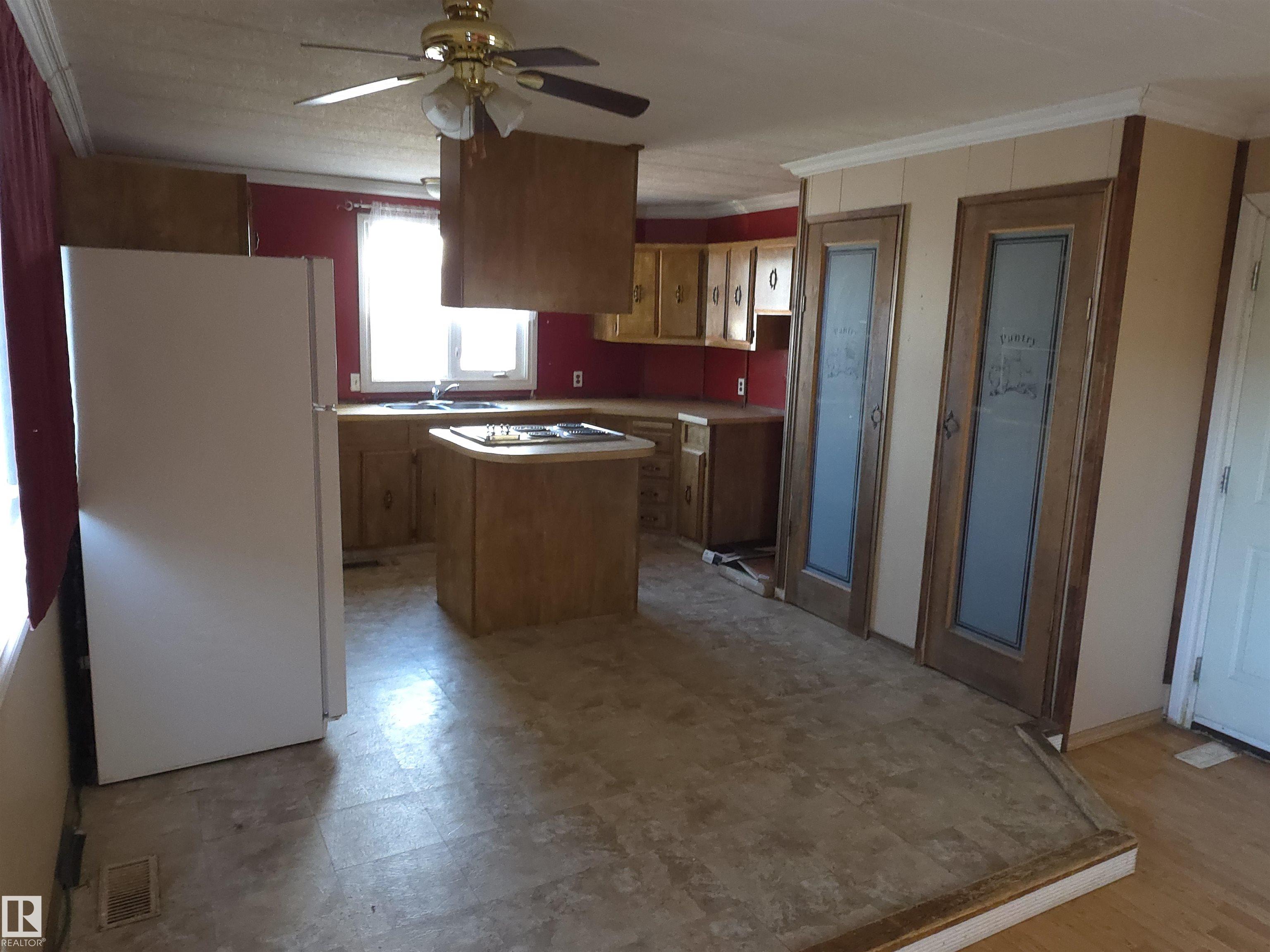 Welcome to this charming 3-bedroom mobile, ideally located on a quiet cul-de-sac and situated on your own pie-shaped lot. No lot rent. The property features a nicely tree... MLS®: E4479790 - Thorsby Bungalow $164,900