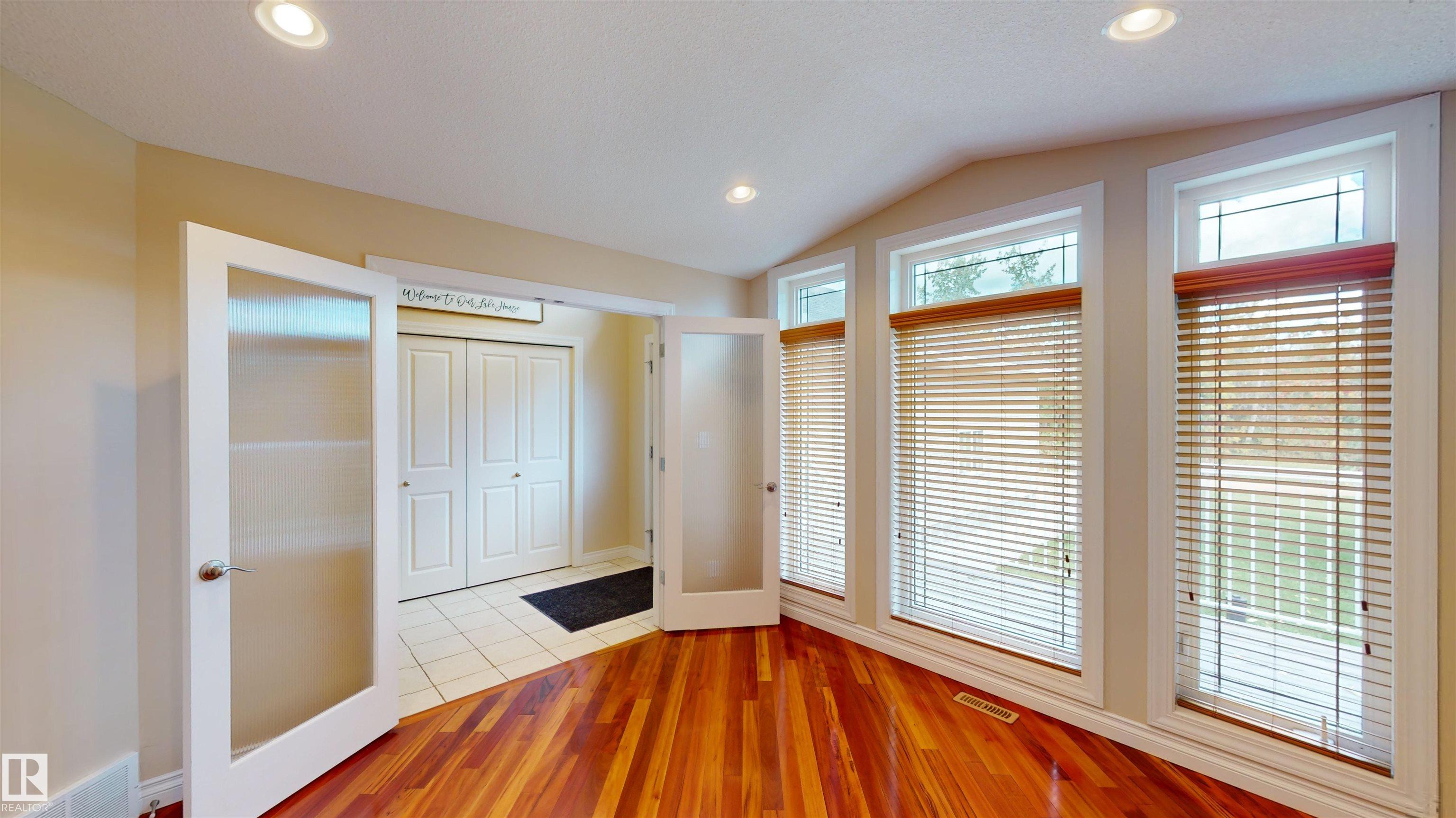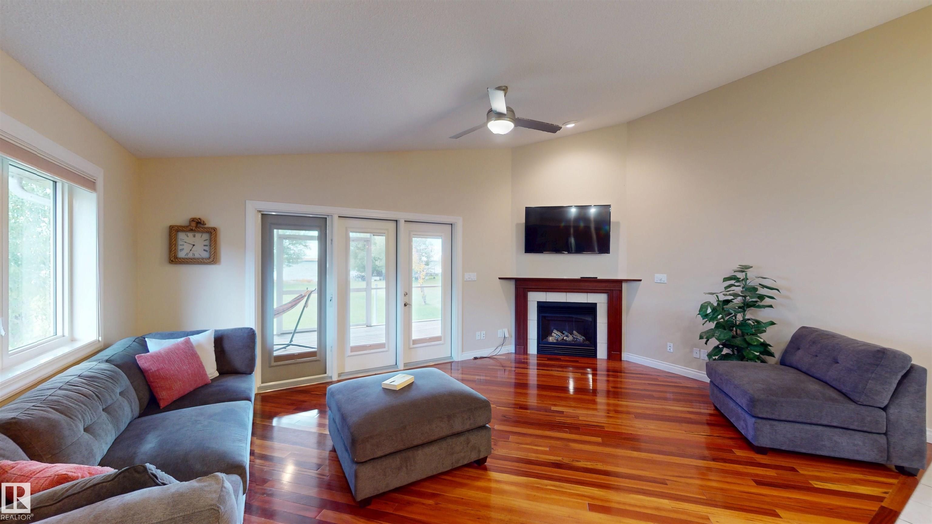 Your dream lakefront escape awaits on the stunning north shore of Lake Wabamun. This beautifully designed modern home offers breathtaking views, an oversized heated garage, and the peace and privacy you've been searching for. Just minutes from the Village of Wabamun and under an hour to Edmonton, it's the perfect balance of convenience and retreat. Inside, over 1,600 sq ft of open-concept living features vaulted ceilings, abundant natural light, and upscale finishes throughout. The flexible layout includes a second bedroom plus an office that easily converts to guest space...ideal for hosting family or weekend visitors. Unwind in the south-facing living room or step onto the fully screened deck from the primary bedroom or living room to take in serene park-like surroundings and lakefront views. Whether you're entertaining or enjoying quiet mornings by the water, this home delivers! A rare opportunity to own lakeside luxury...don't miss out on this one! MLS®: E4482608 - Rizzie Beach Bungalow $799,900