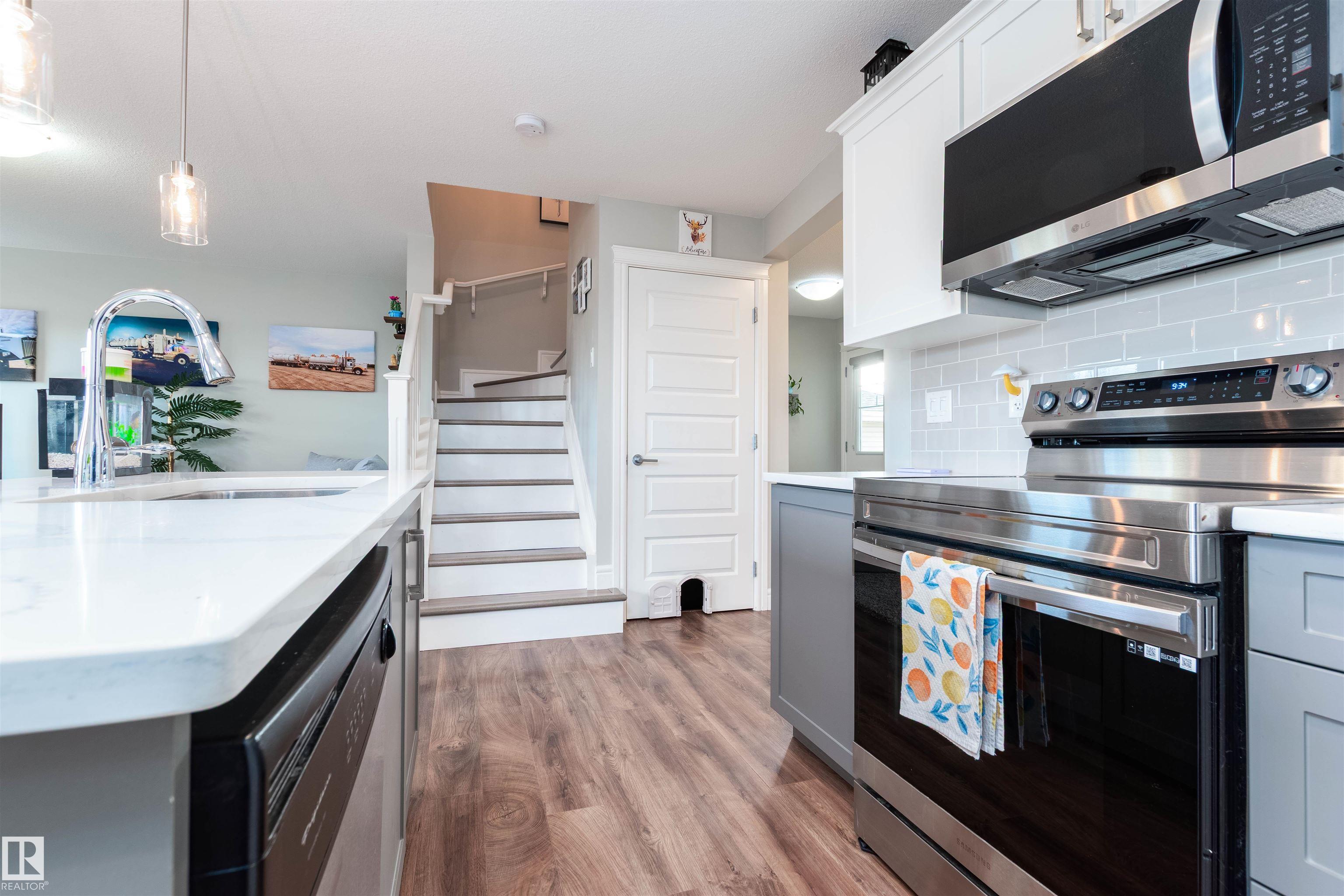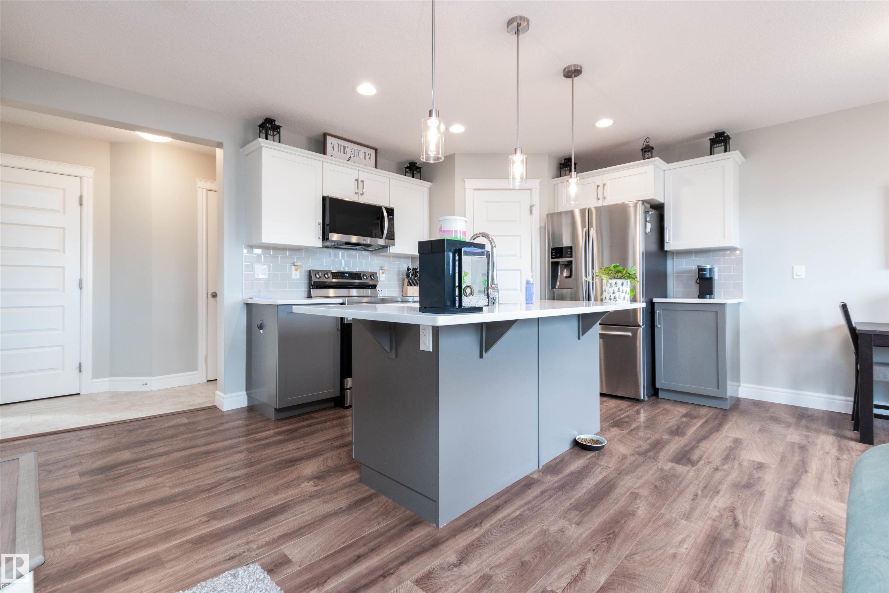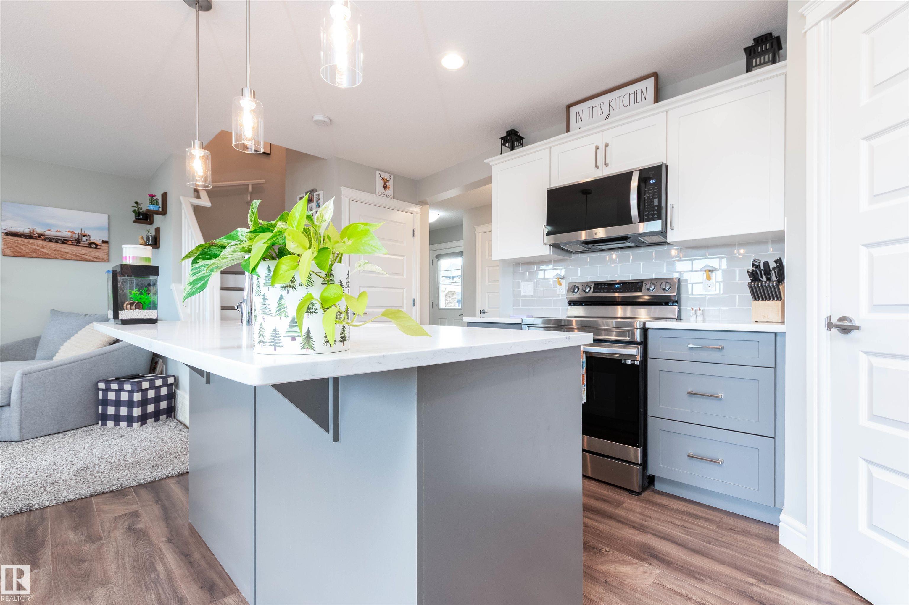 BEAUTIFUL HALF DUPLEX! Warm and inviting with 1551 square feet and double attached garage. NO condo fees here! Featuring a gorgeous kitchen with Quartz countertops, islan... MLS®: E4483558 - Aspen Trails 2 Storey $479,707