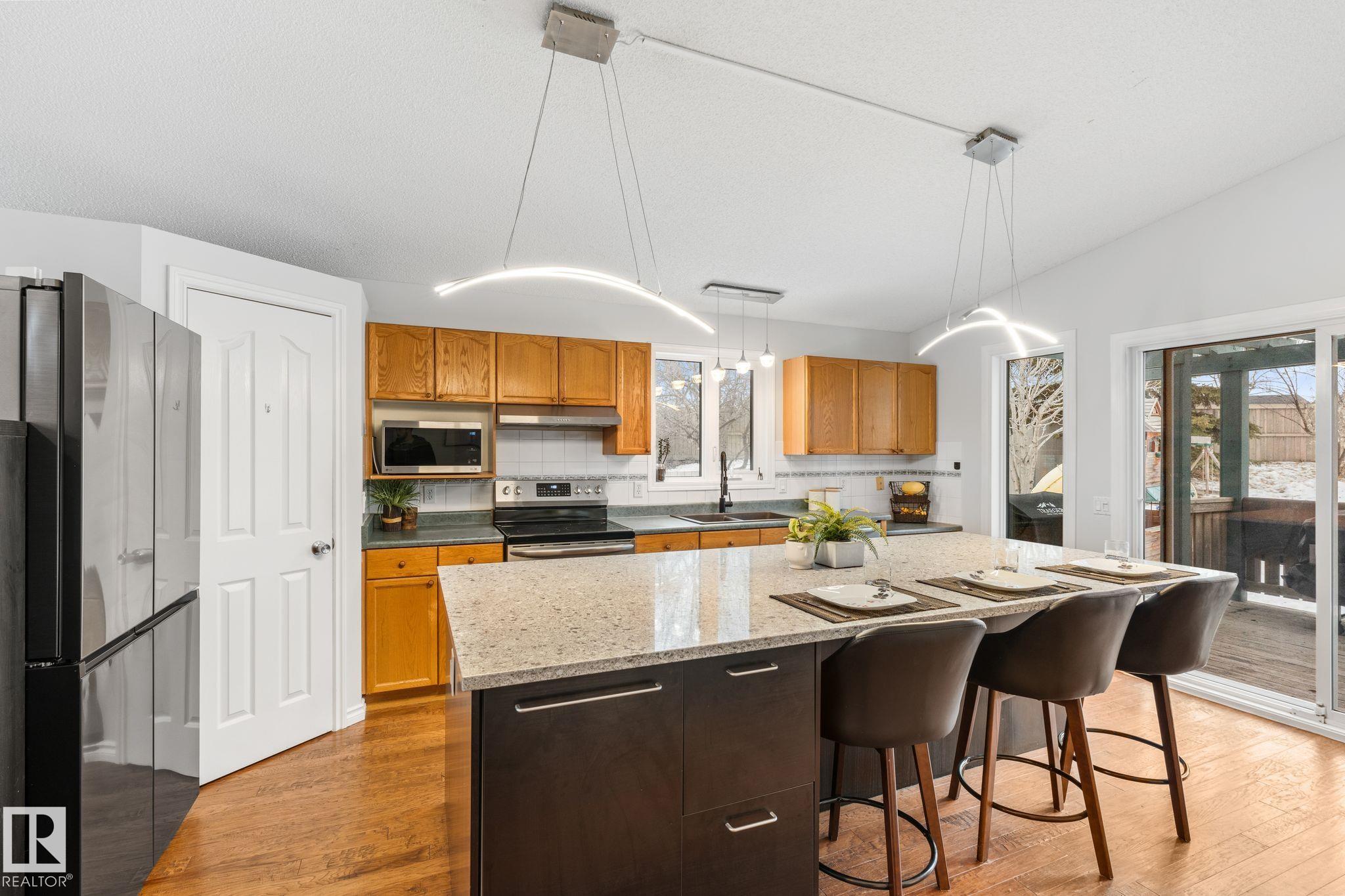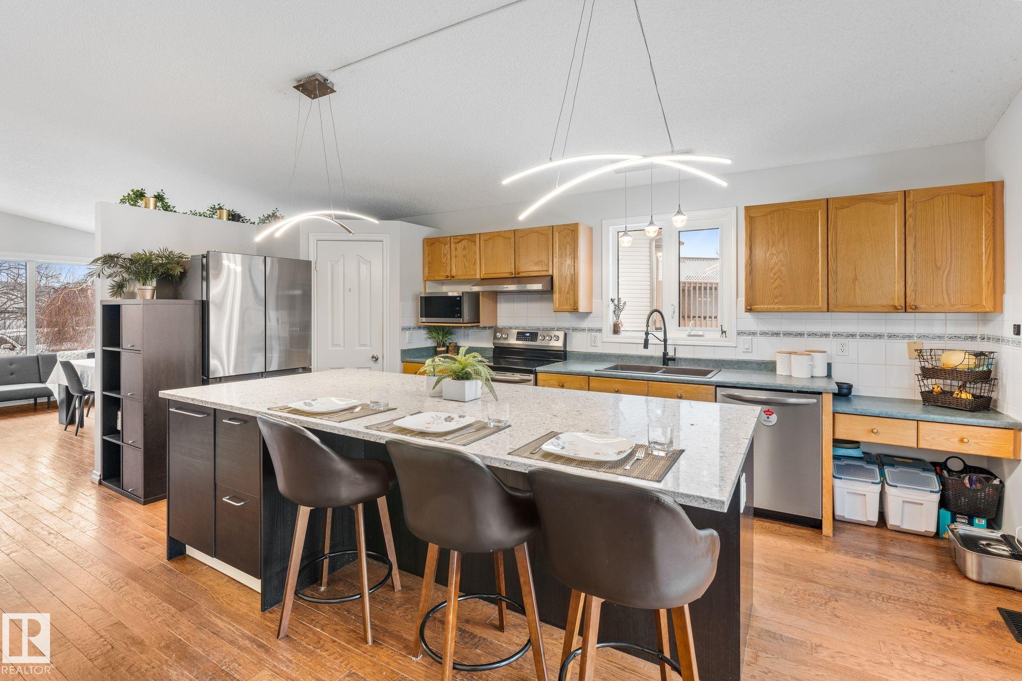 Welcome to one of the largest lots in Davidson Creek, tucked into a cul-de-sac and packed with updates! This spacious and functional 4-level split offers nearly 2,400 sq ft of finished living space and a layout perfect for growing families. The massive, fully landscaped yard, heated double attached garage is a true standout -- featuring mature trees, a 2-tier deck, pergola, shed, and loads of room to play or entertain. Inside, you'll love the bright vaulted living room and the beautifully renovated kitchen with a huge island, tons of cabinetry, and brand-new appliances. New vinyl plank flooring on the upper and lower levels adds a modern touch, while new windows and a new furnace with a heat pump(air conditioning ) and a newer roof provide peace of mind. With multiple living areas, generous bedrooms, and great flow throughout, this home offers incredible flexibility for family life, work, and play. A rare lot size, major upgrades, and an unbeatable location close to schools -- this one is a must-see! MLS®: E4471814 - Davidson Creek 4 Level Split $499,900