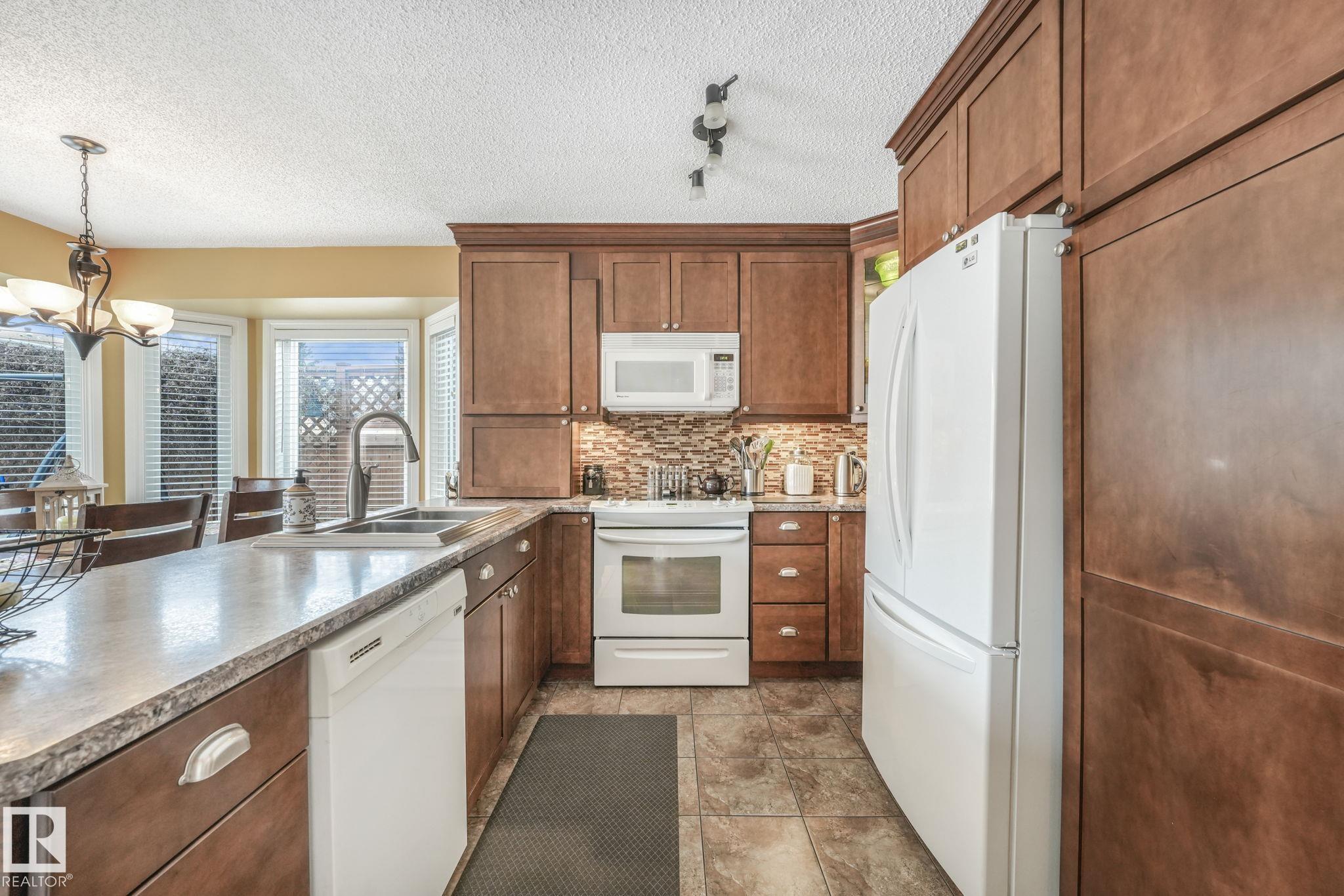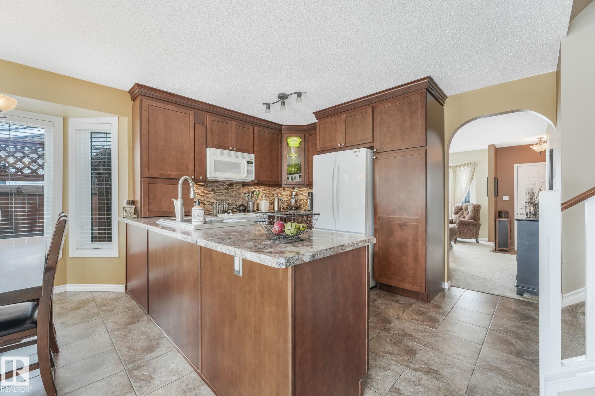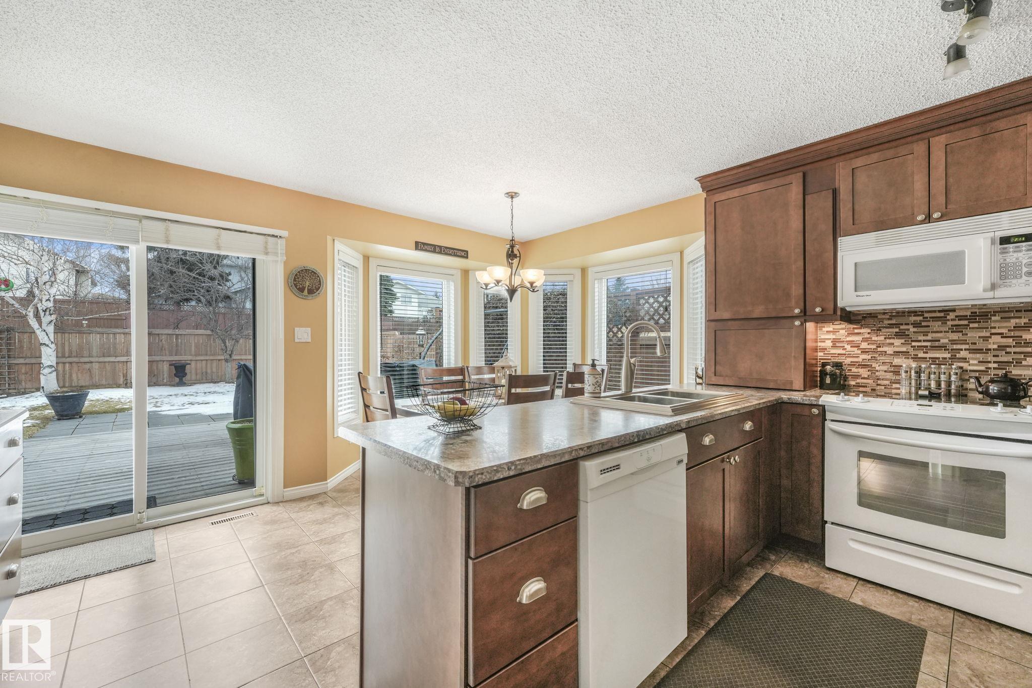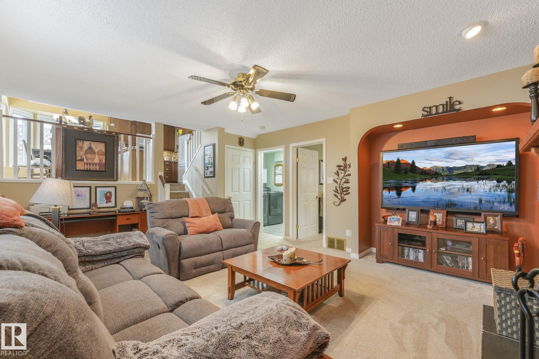 Beautifully renovated family home in desirable Davidson Creek! Ideally located on a quiet dead-end street backing onto walking trails and just steps from parks and schools, this move-in ready home features A/C, 4 bedrooms & 3 baths. A welcoming entry leads you into the bright main living areas flooded with natural light. The fully equipped kitchen offers loads of cabinetry and a peninsula island overlooking the family room, dining room and backyard. Upstairs, retreat to the king-sized primary suite with 3pc ensuite, plus 2 additional generous bedrooms and a 4pc main bath. The lower level boasts bright family room with wood-burning fireplace, 4th bedroom (or office) and spacious laundry room. Enjoy even more space in the basement with a rec room, office area, snack station/bar and a 3pc bath. Outside, relax in the fenced and landscaped yard with deck, patio, Hot Tub or enjoy a stroll on the walking trails with access right out your back fence. Nothing to do but move in! MLS®: E4479234 - Davidson Creek 4 Level Split $549,000