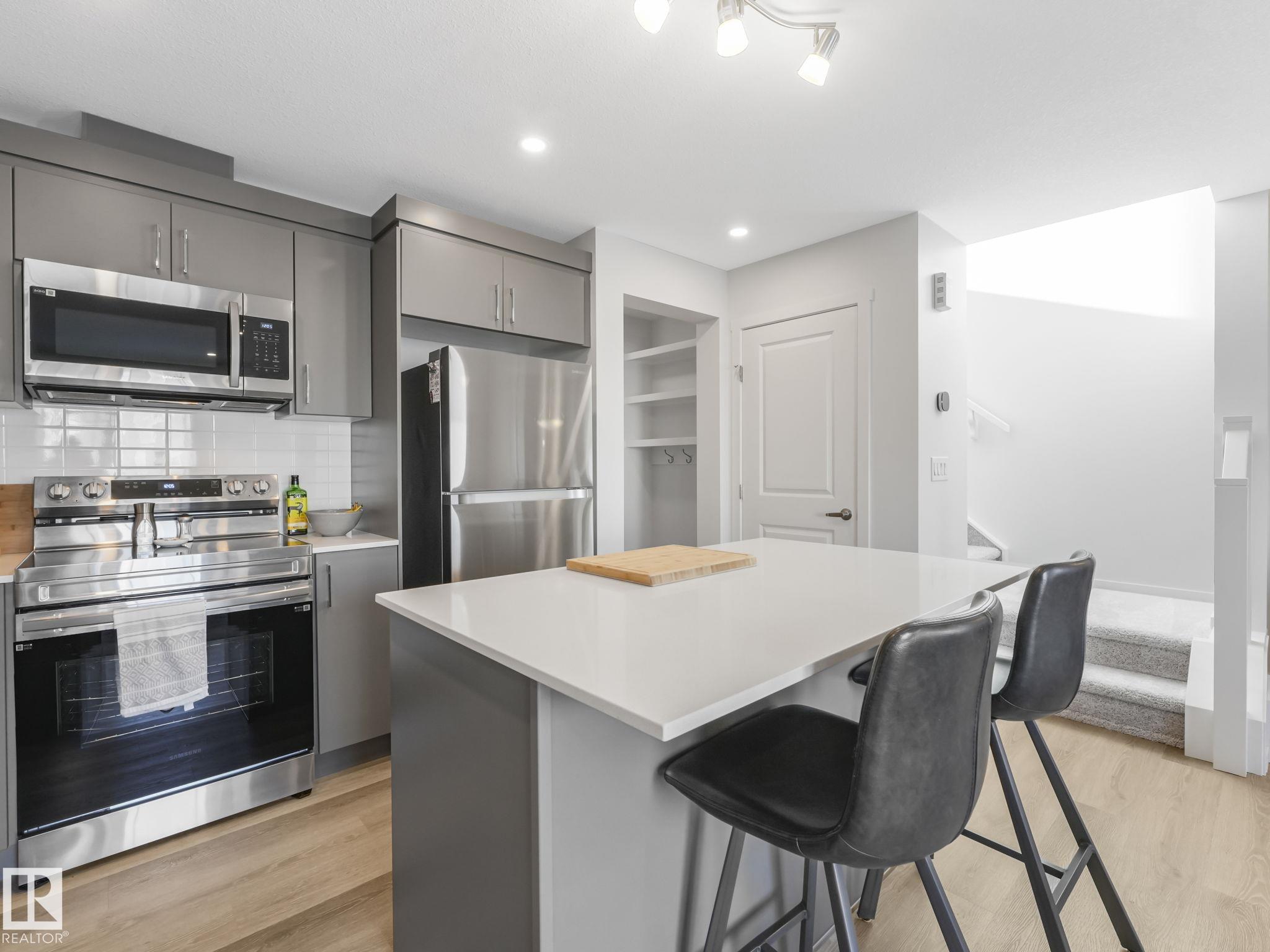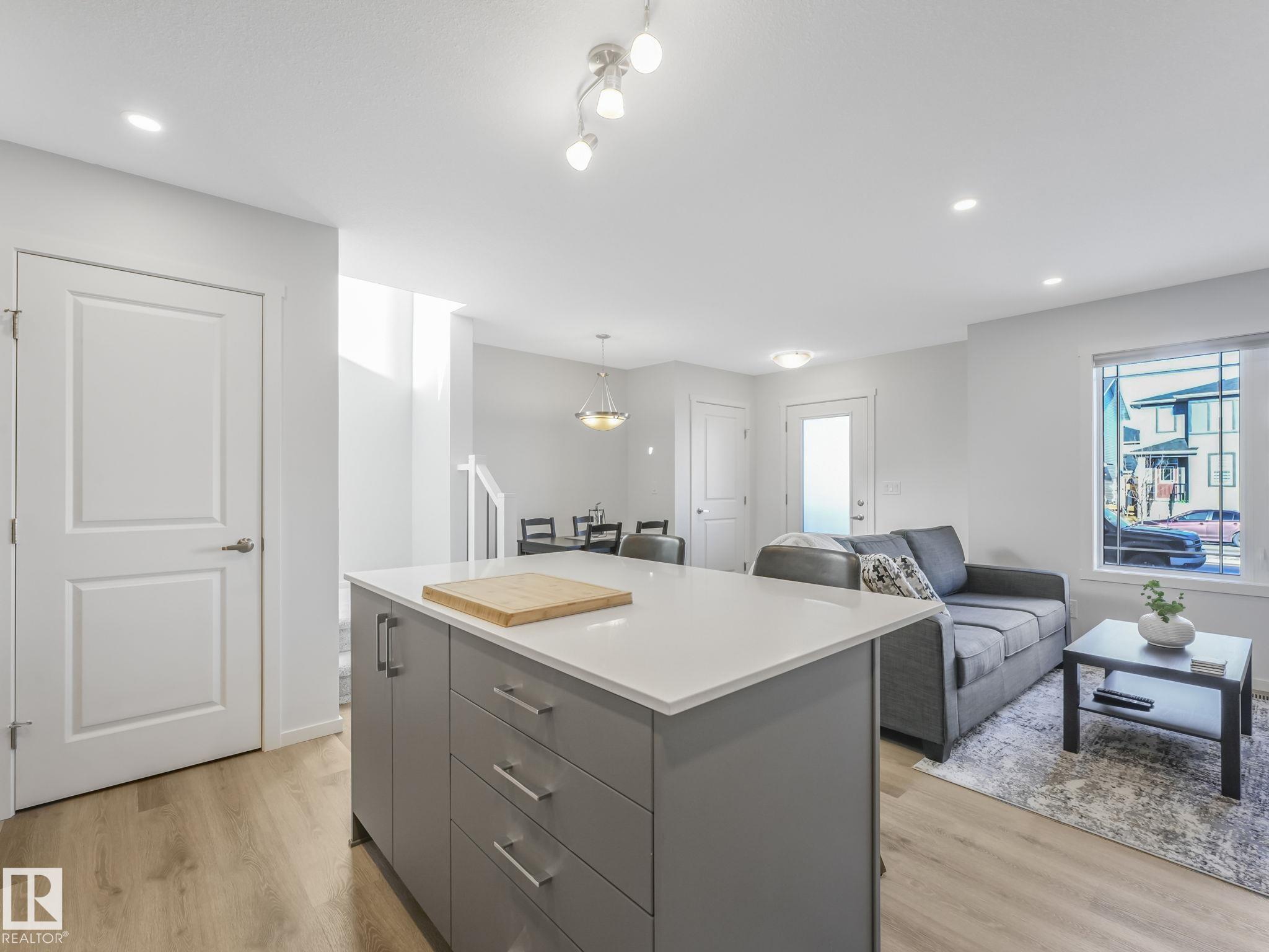 Step into this beautiful 2024-designed home that shows like a show suite, offering bright, modern finishes & exceptional functionality with NO CONDO FEES. Located in Hearthstone a friendly neighbourhood w/ excellent access at both ends of the community & close to scenic walking trails. The home features functional living, dining, and kitchen areas, ideal for both everyday living & entertaining. The kitchen is finished with quartz countertops, stainless steel appliances, and professionally installed Bali cordless window coverings throughout. The Primary south-facing bedroom offers a walk-in closet and excellent natural light. Unlike many attached homes this property includes a full basement, providing ample storage and future development potential. Enjoy outdoor living on the huge 19' x 19' deck, a welcoming front porch. The insulated, drywalled double attatched garage is generously sized to accommodate a full-size truck. Bright, stylish, & thoughtfully designed--this home checks all the boxes. MLS®: E4472610 - Hearthstone (Strathcona) 2 Storey $379,888