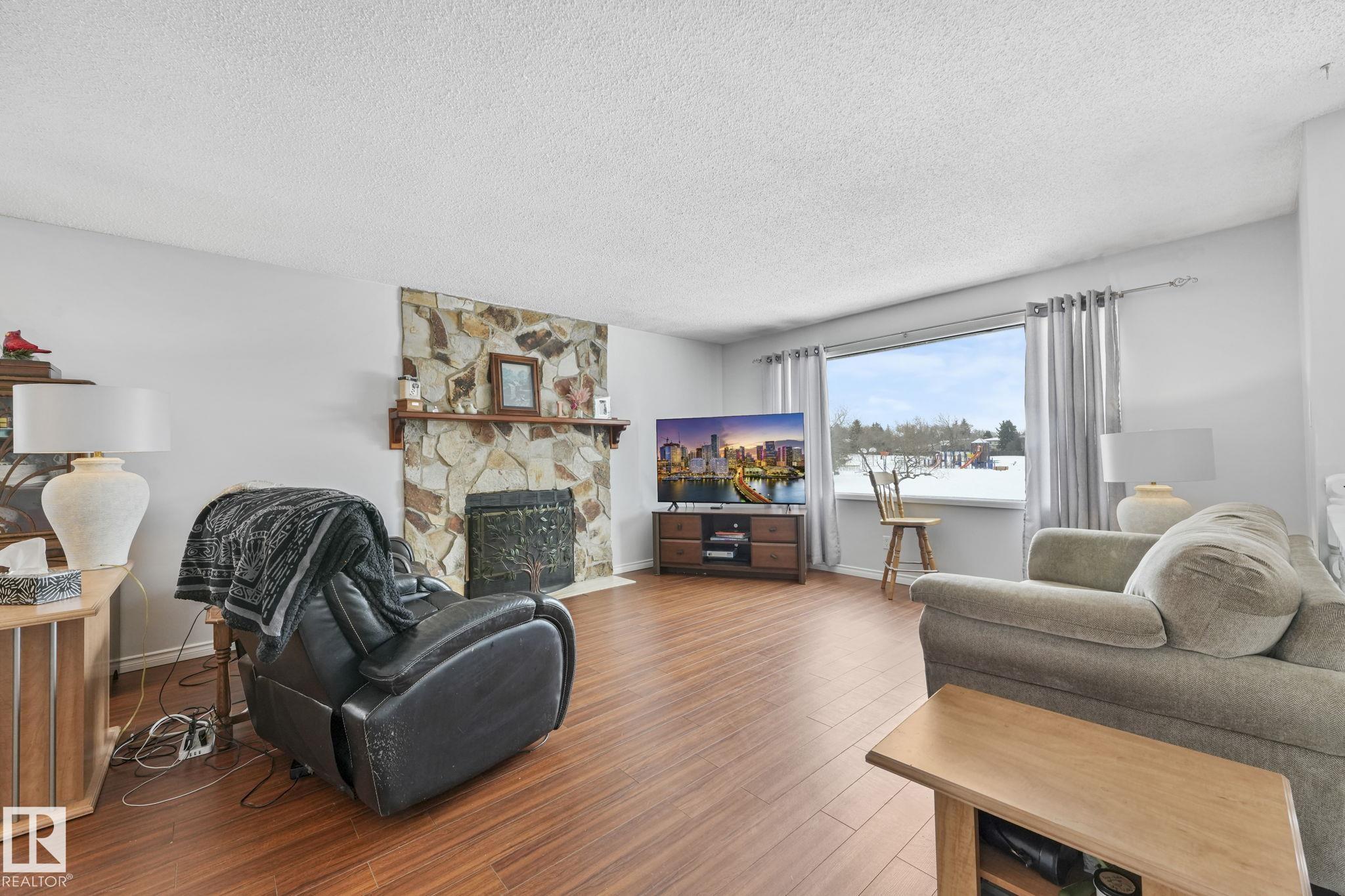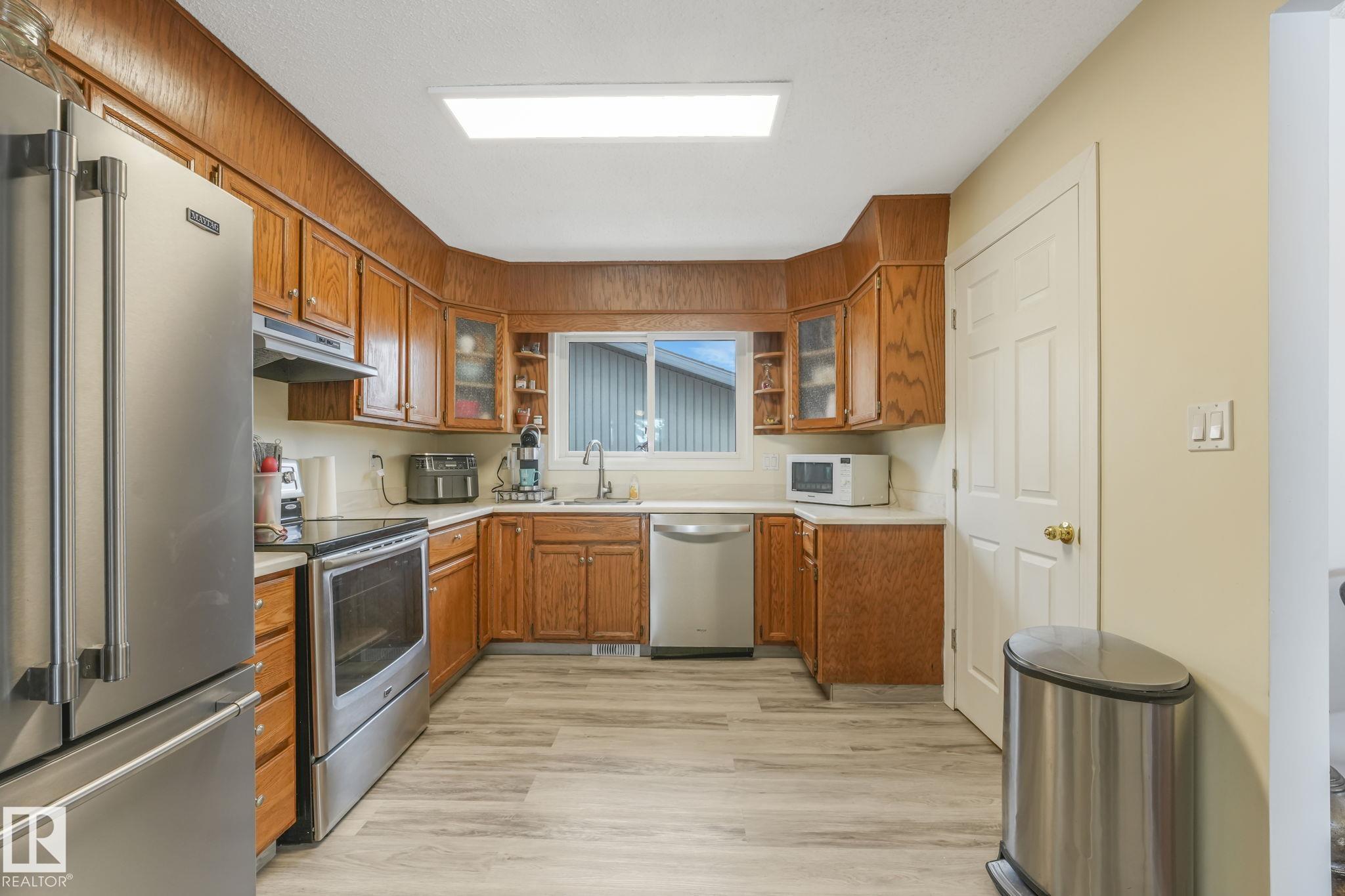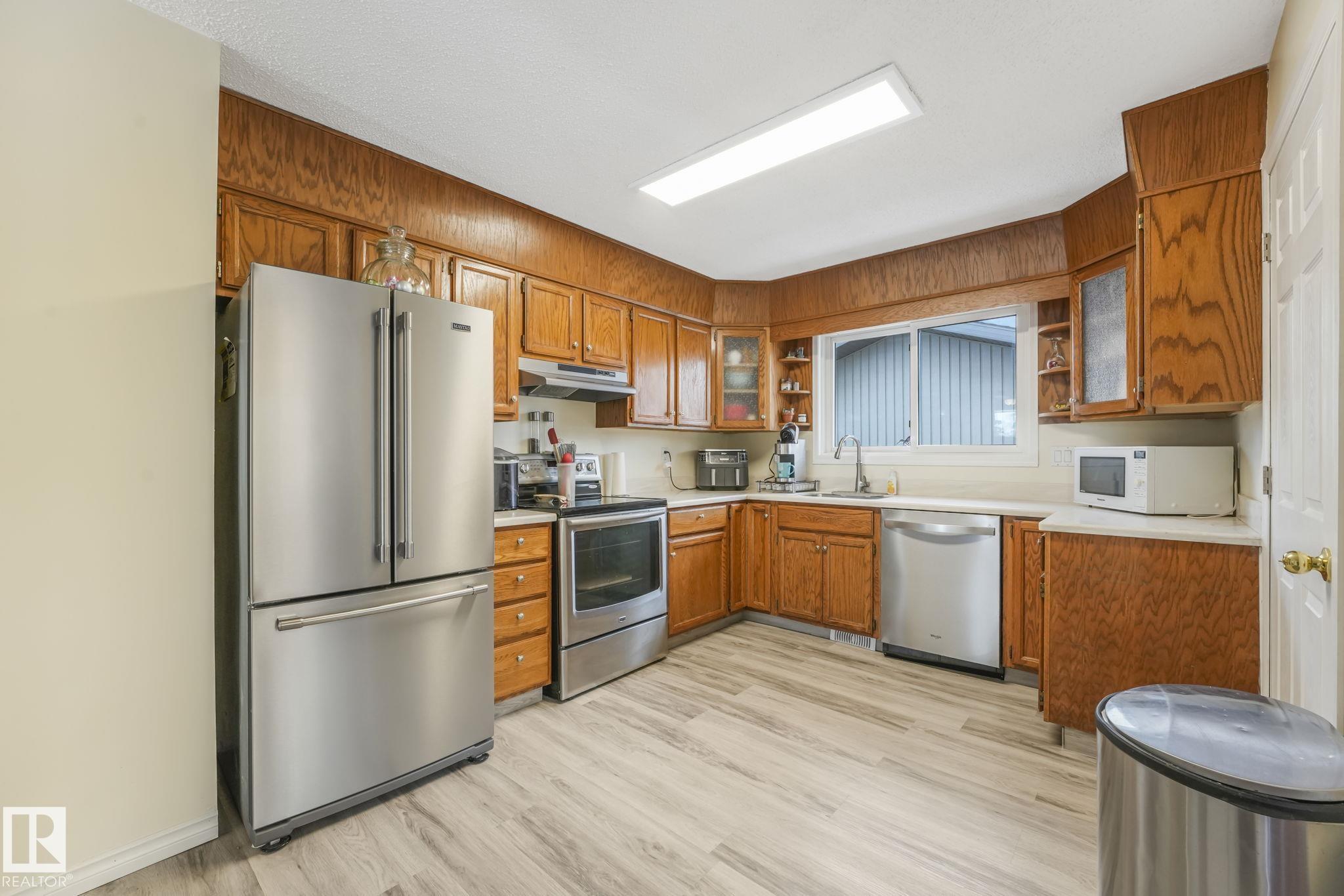 Outstanding Bi-level home on Parker Manor near parks, schools, and gorgeous walking trails. At 1319 sq ft, this home has everything you need from a good size kitchen with Corian countertop(2020) newer appliances, dishwasher(2023), fridge(2024), stove(2021),Microwave hood fan(2024). Neutral color scheme throughout the home that was freshly painted. The dining area opens into the large living room that holds a beautiful wood burning fireplace. The home has some new windows & newer light fixtures. The primary bedroom has a walk-in closet & 3-piece ensuite. The 2 other bedrooms are generous sizes. The 4 piece main bath has been updated. The lower level has a large living room including a gas fireplace & is attached to the 2nd kitchen & walk down the hall to find the 3 bedrooms & a 4 piece bath. The large windows allow a lot of natural light in this whole home. The backyard features a lg deck, backing onto a green space. The oversized heated garage has room for 3 vehicles but a double door. MLS®: E4475501 - Woodbridge Farms Bi-Level $549,800