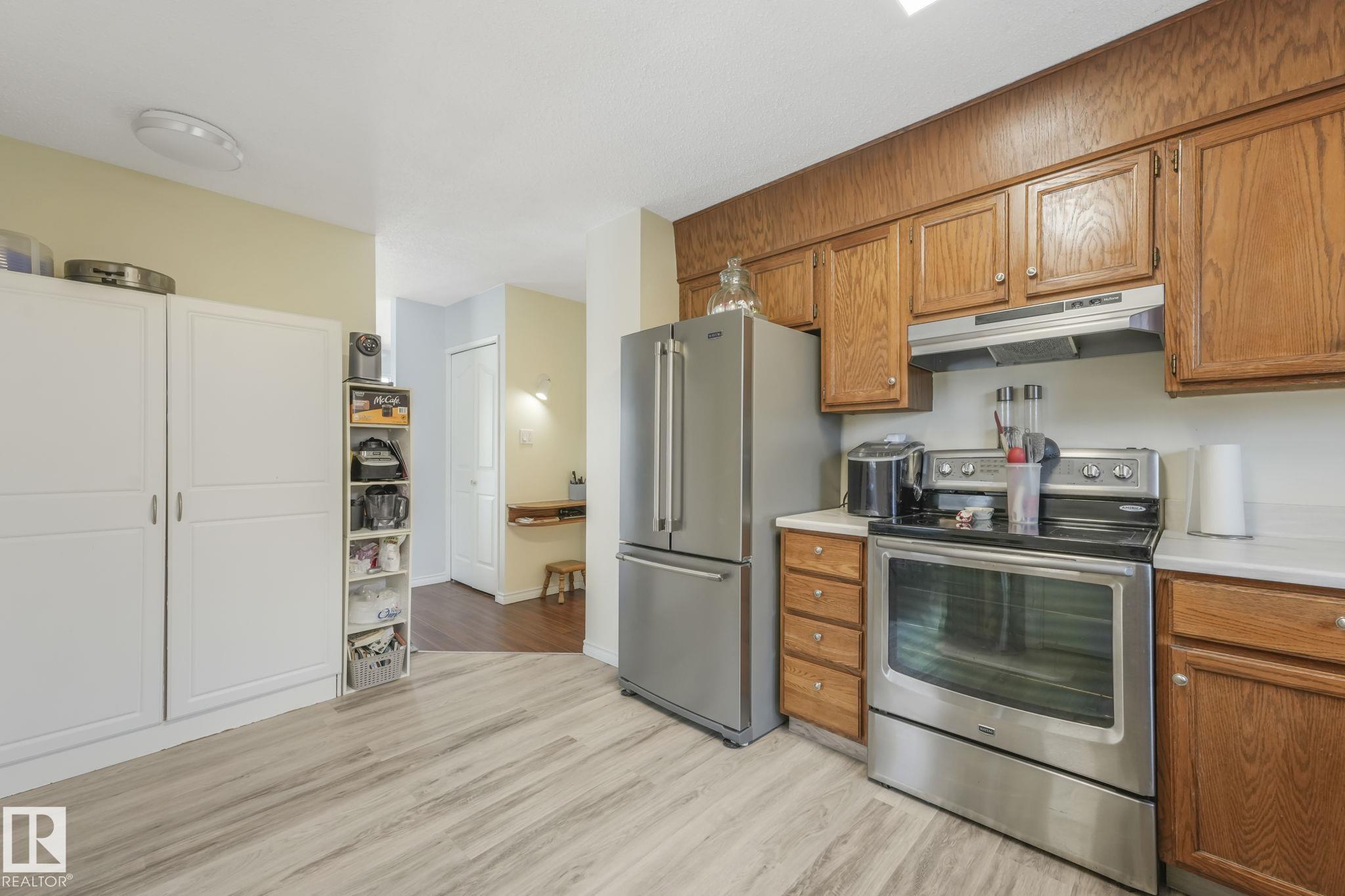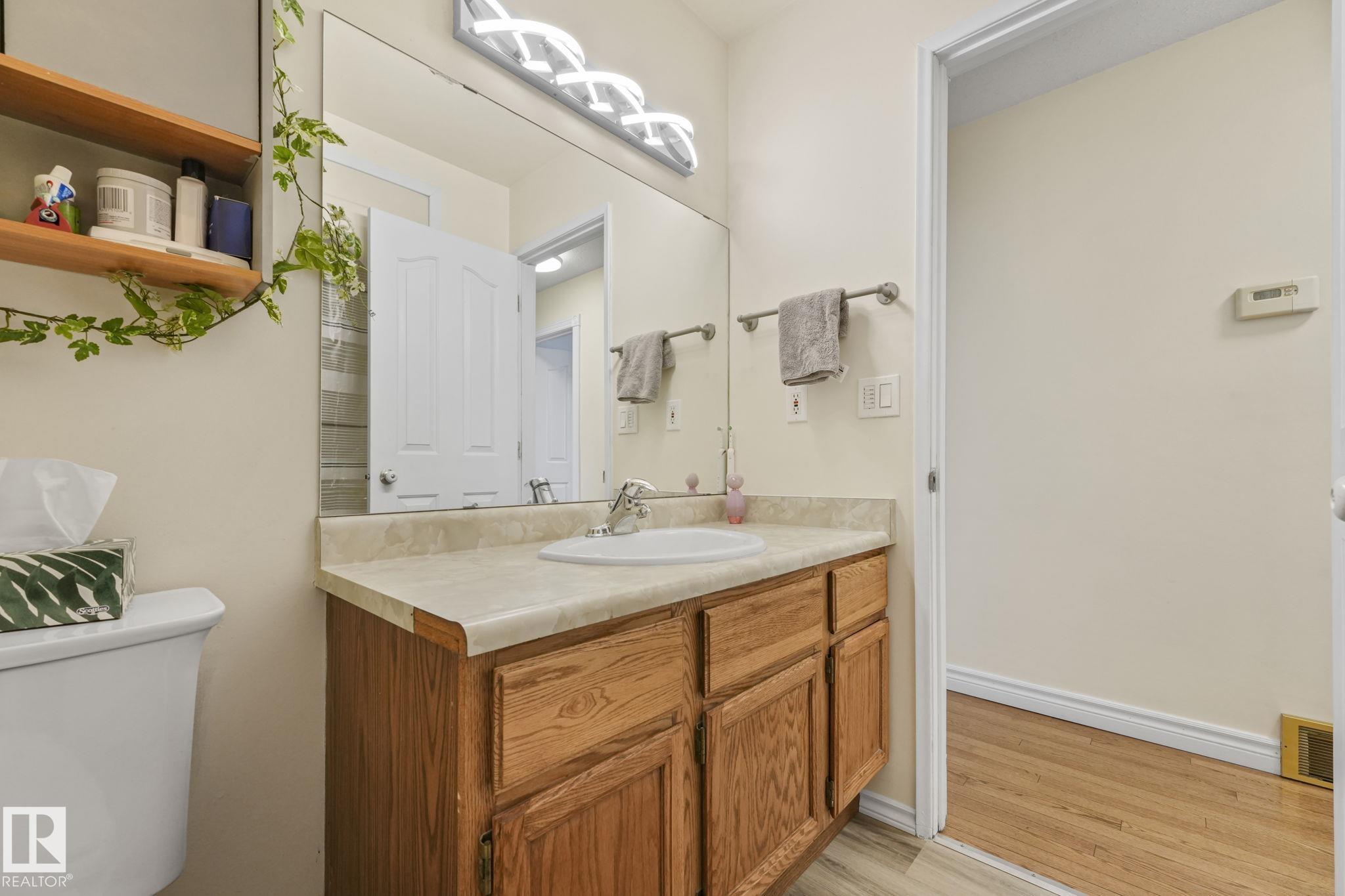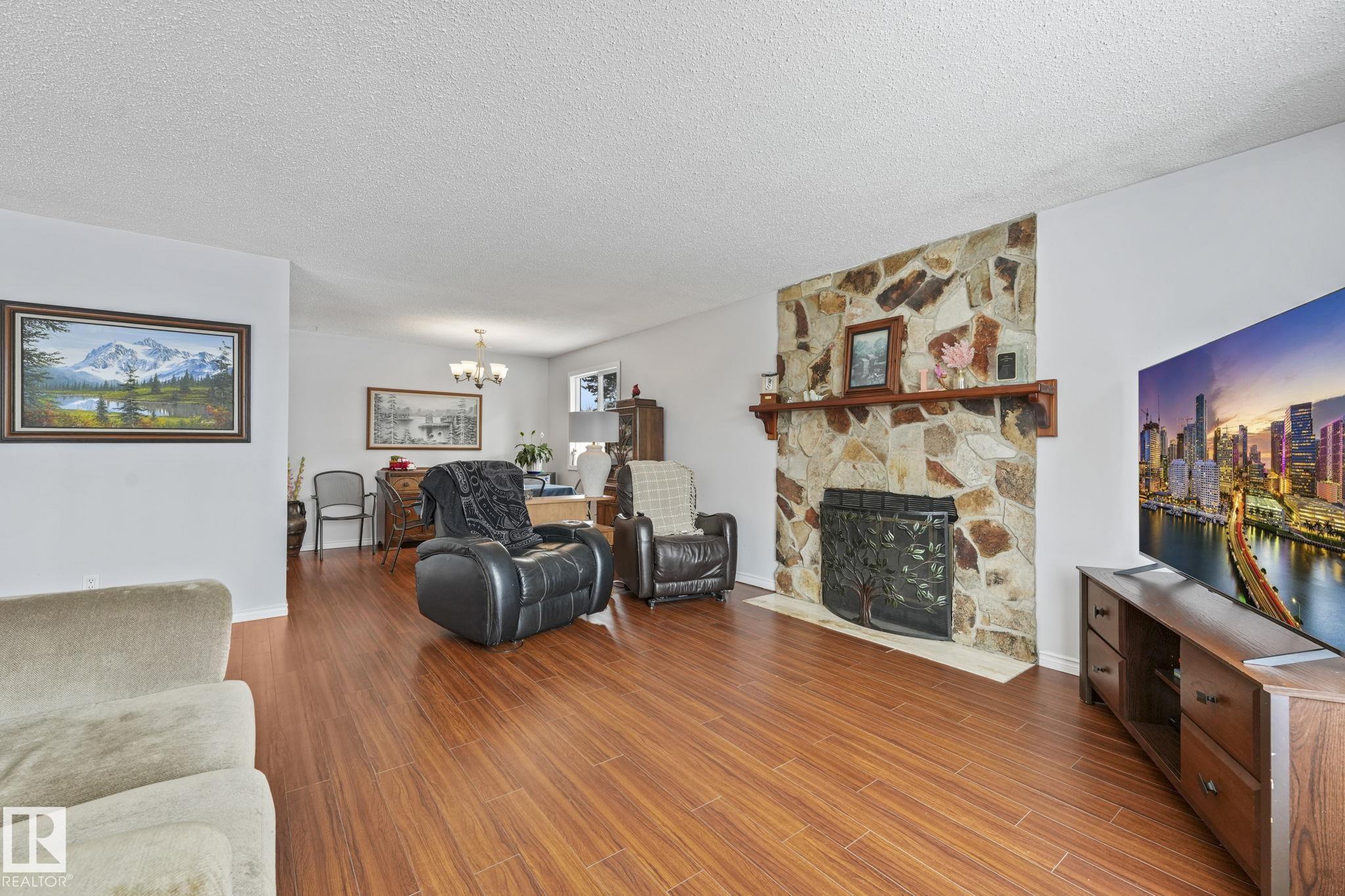 Outstanding Bi-level home on Parker Manor near parks, schools, and gorgeous walking trails. At 1319 sq ft, this home has everything you need from a good size kitchen with Corian countertop(2020) newer appliances, dishwasher(2023), fridge(2024), stove(2021),Microwave hood fan(2024). Neutral color scheme throughout the home that was freshly painted. The dining area opens into the large living room that holds a beautiful wood burning fireplace. The home has some new windows & newer light fixtures. The primary bedroom has a walk-in closet & 3-piece ensuite. The 2 other bedrooms are generous sizes. The 4 piece main bath has been updated. The lower level has a large living room including a gas fireplace & is attached to the 2nd kitchen & walk down the hall to find the 3 bedrooms & a 4 piece bath. The large windows allow a lot of natural light in this whole home. The backyard features a lg deck, backing onto a green space. The oversized heated garage has room for 3 vehicles but a double door. MLS®: E4475501 - Woodbridge Farms Bi-Level $549,800