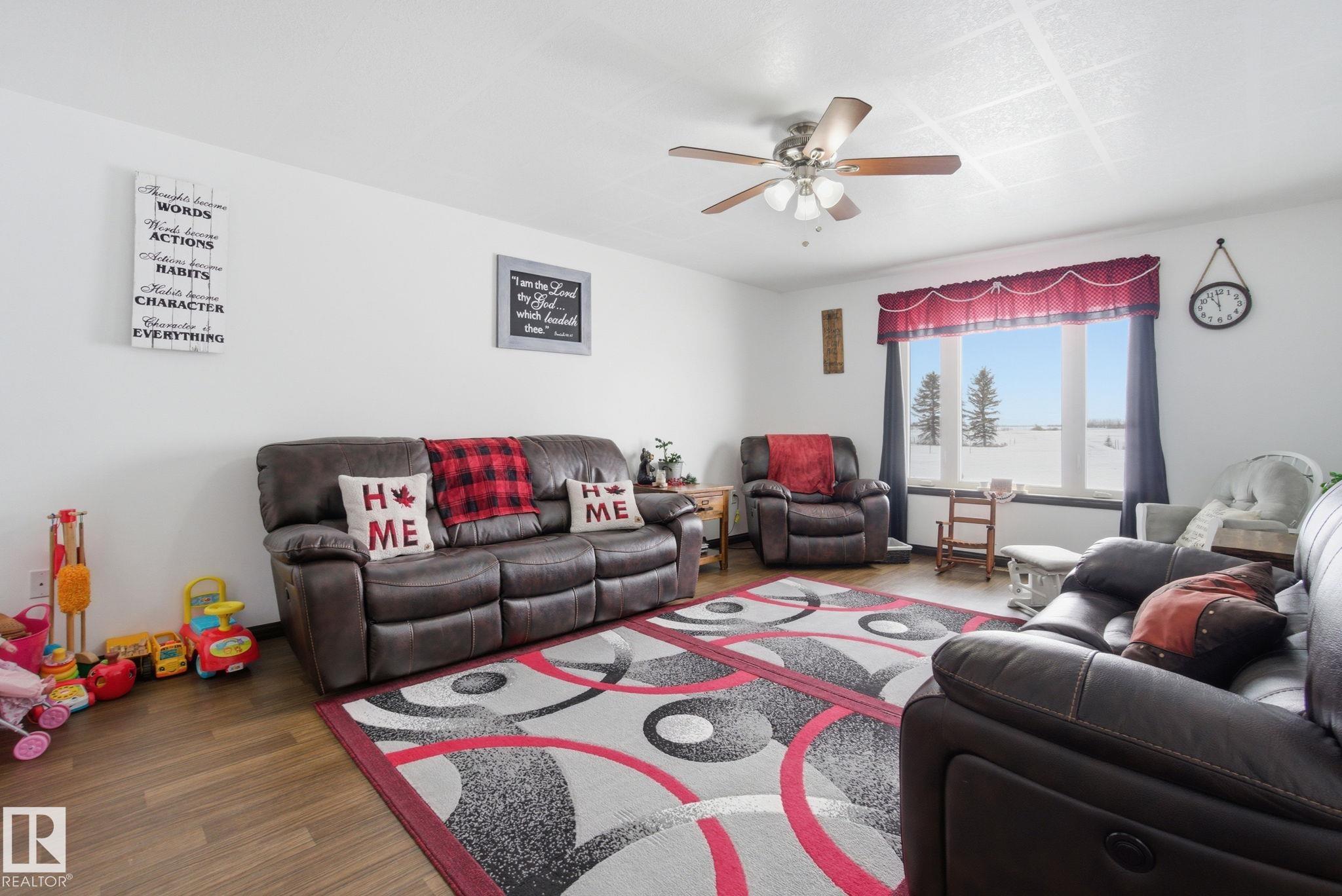 Site Influences: Fenced, Flat Site, Fruit Trees/Shrubs, Landscaped Property InformationProperty Type: Detached Single Family Home Style: Bungalow Year Built: 2016 Total Floor Area: 1,615 sq. ft. Brokerage: Realty Focus Listed Date: Please login or create an account Community InformationCity/Town: Two Hills Community: None ExteriorLot Size: 8.40 acres InteriorBasement: Fully Finished RoomsTotal Bedrooms: 5 (Bedrooms Above: 2) Bathrooms: Full: 3 / Half: 0 Above Grade: 2 Legal, Financial & PossessionMonthly Fee: 0 Listing Courtesy of Brendan Spackman, Jarett Johnson / Realty Focus Copyright 2026 by the REALTORS® Association of Edmonton. All Rights Reserved. Data is deemed reliable but is not guaranteed accurate by the REALTORS® Association of Edmonton. Data was last updated March 23, 2026, 8:50 pm. MLS®: E4478682 - None Bungalow $595,000